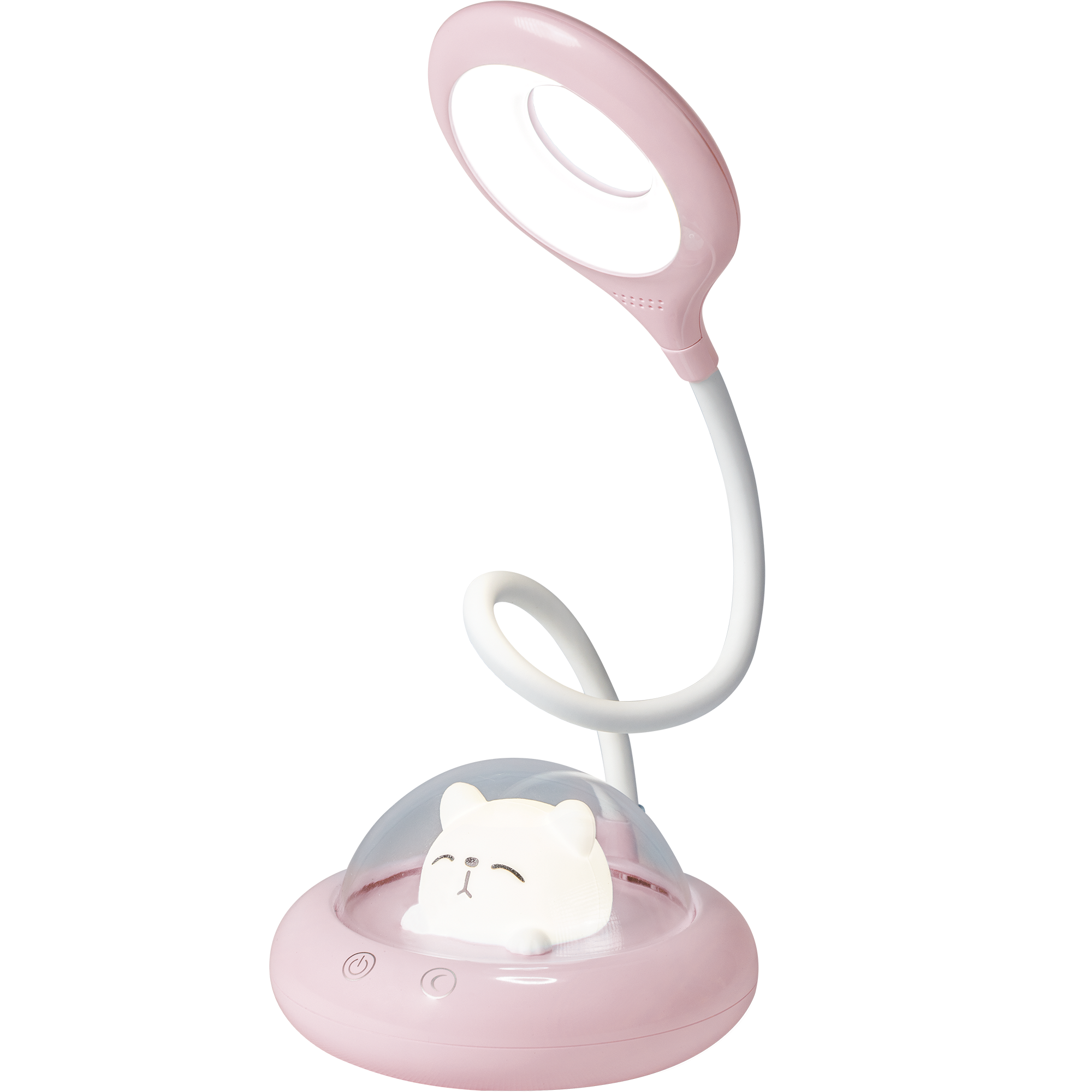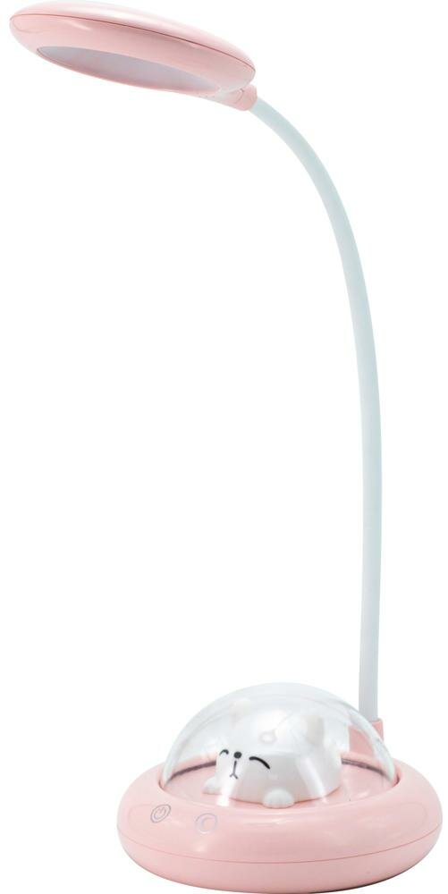 Лампа настольная, светильник ночник детский аккумуляторный фотон Космический кот, розовый