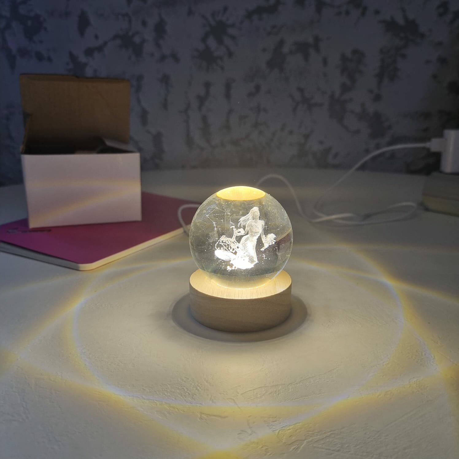 Хрустальный шар 3д ночник, магический шар с гравировкой светодиодный, питание 5V от USB кабеля