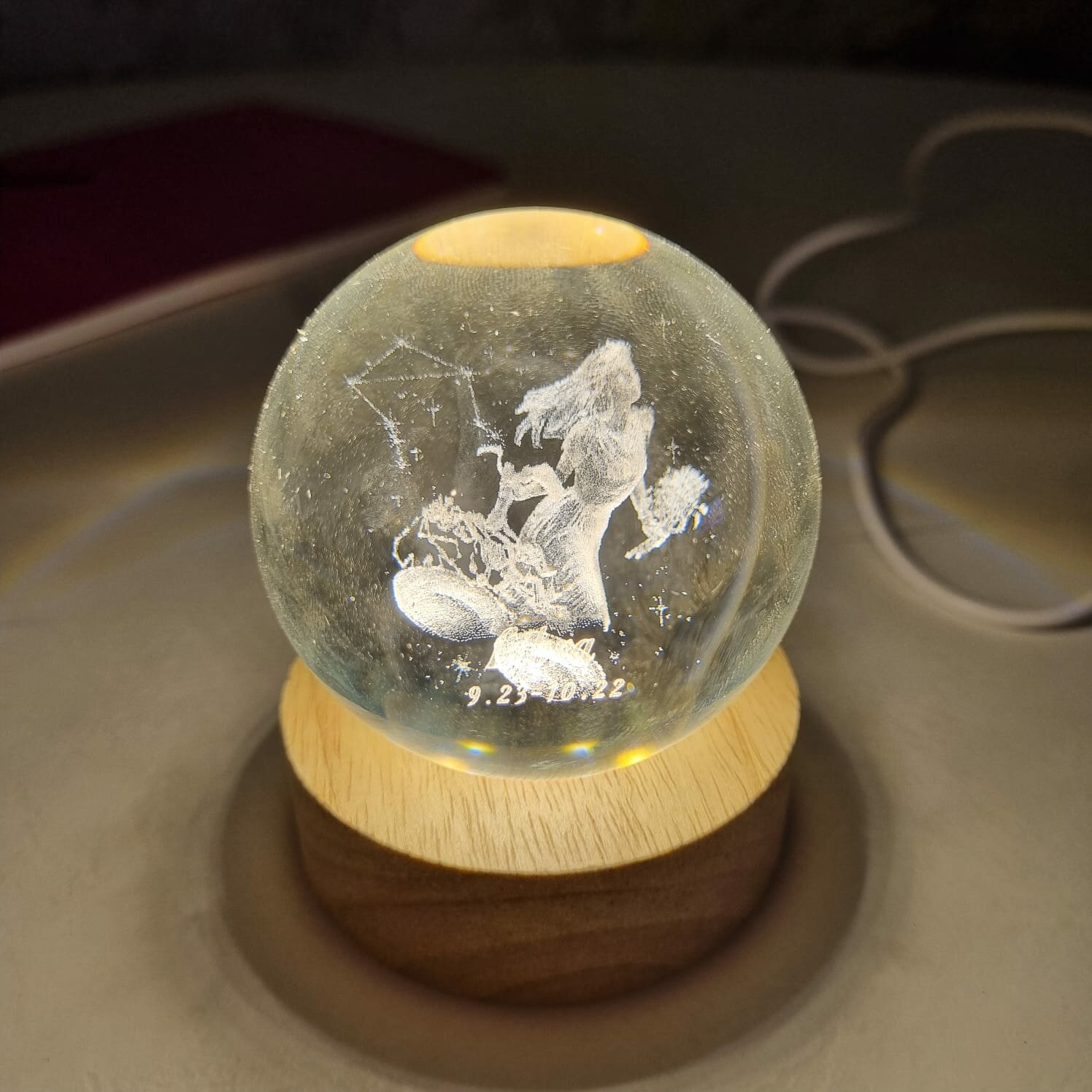 Хрустальный шар ночник Знак зодиака "Стрелец" с 3D лазерной гравировкой