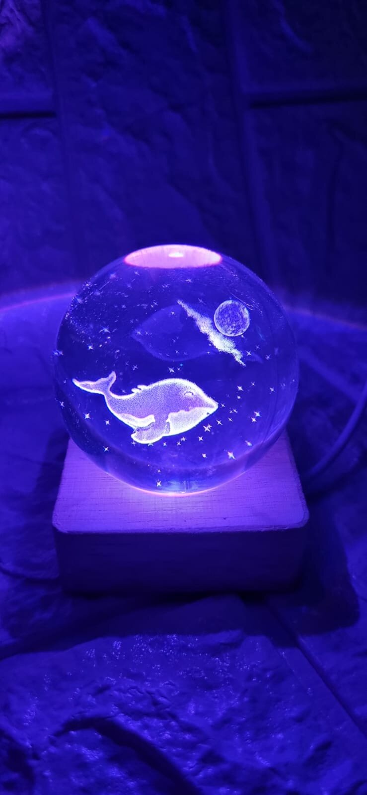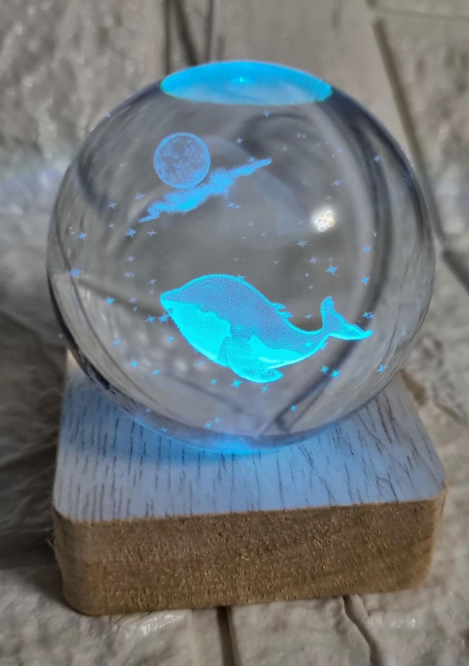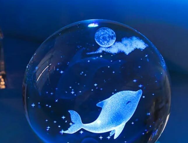 Хрустальный шар ночник Знак зодиака "Рыбы" с 3D лазерной гравировкой