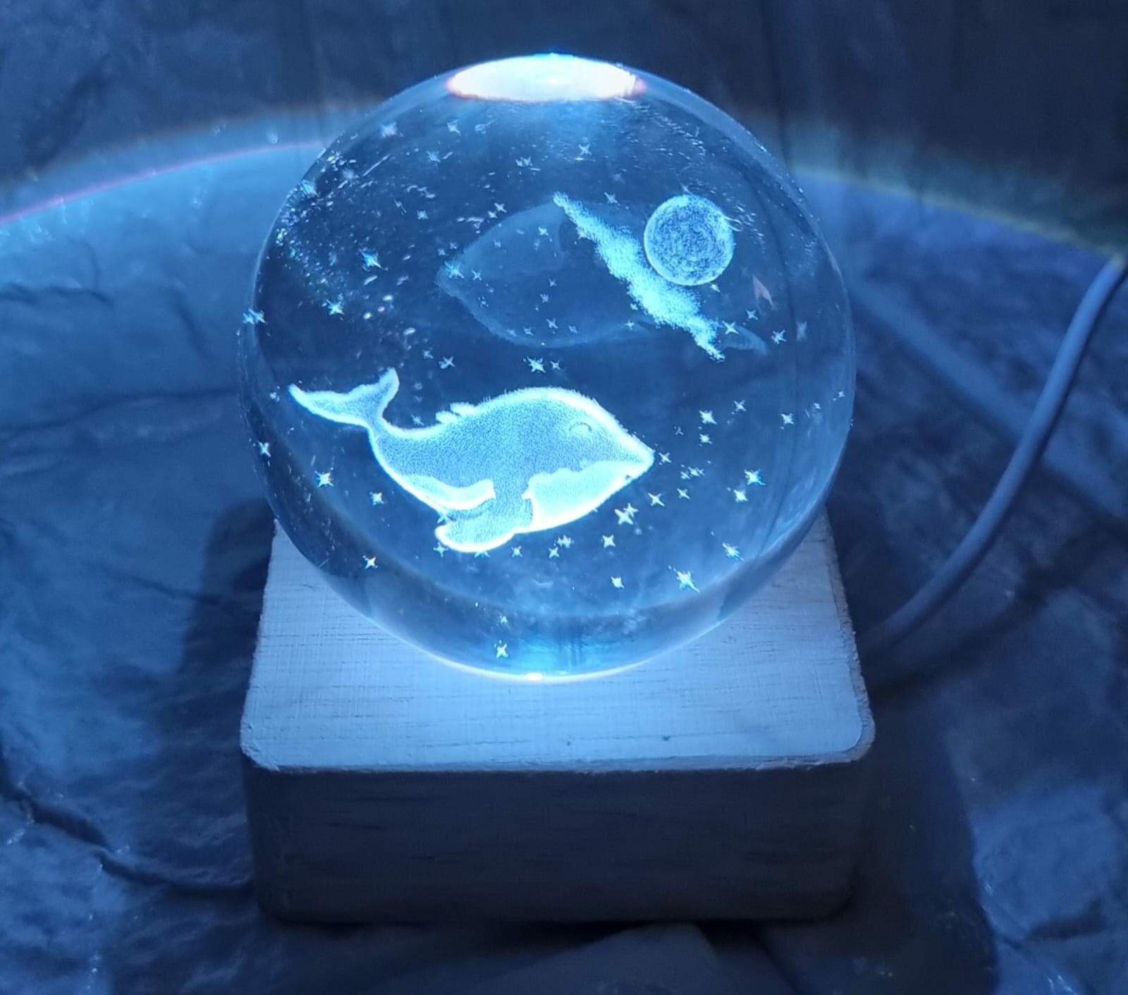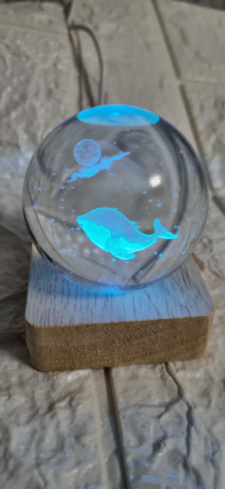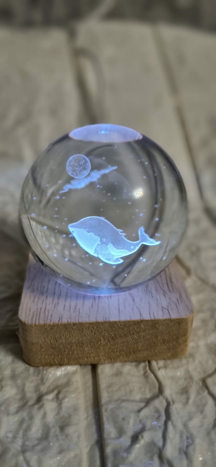 Хрустальный шар ночник Знак зодиака "Рыбы" с 3D лазерной гравировкой