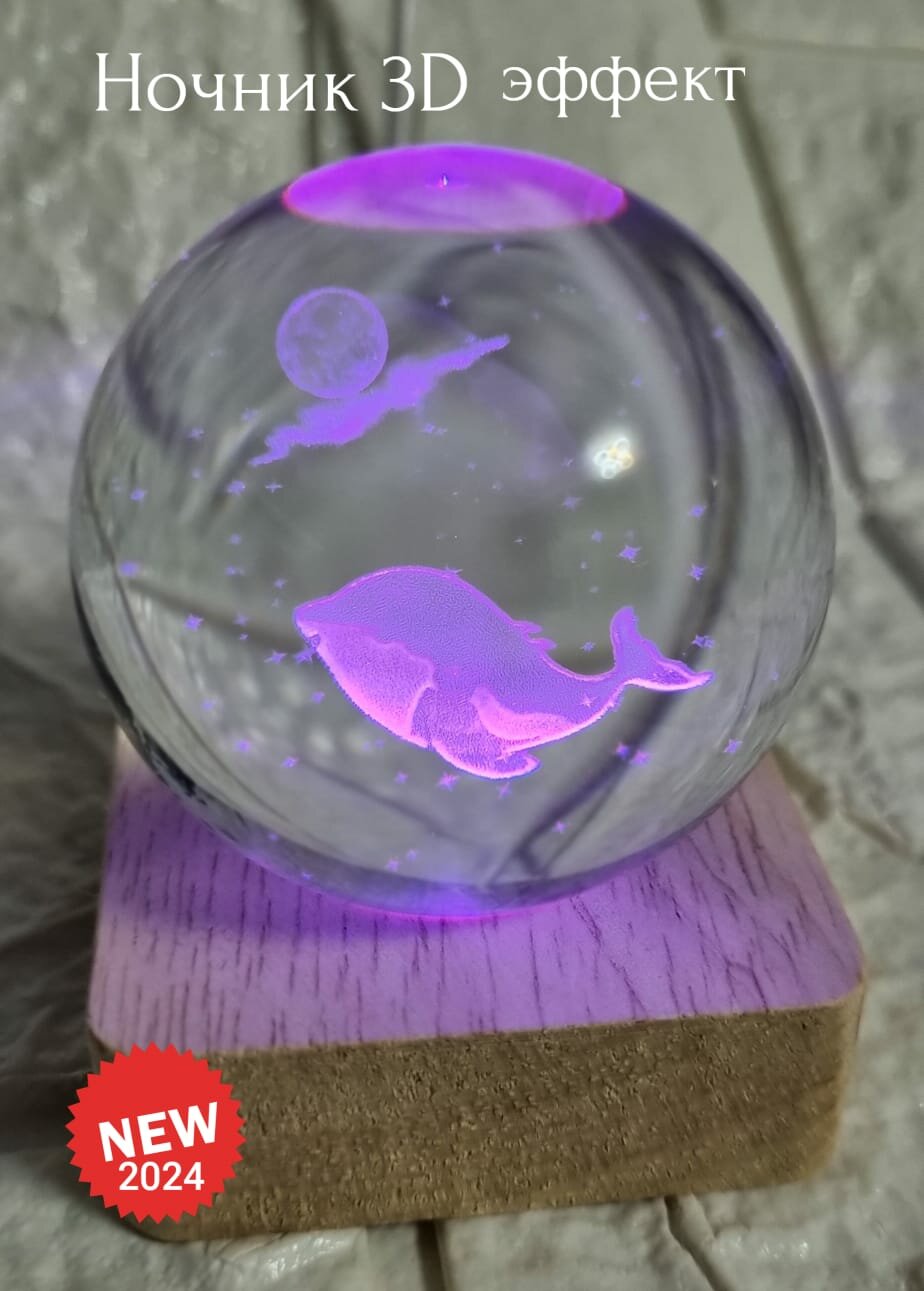 Купить Хрустальный шар 3д ночник, магический шар с гравировкой светодиодный, питание 5V от USB кабеля