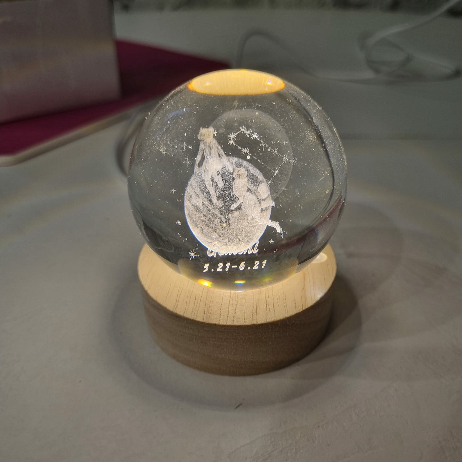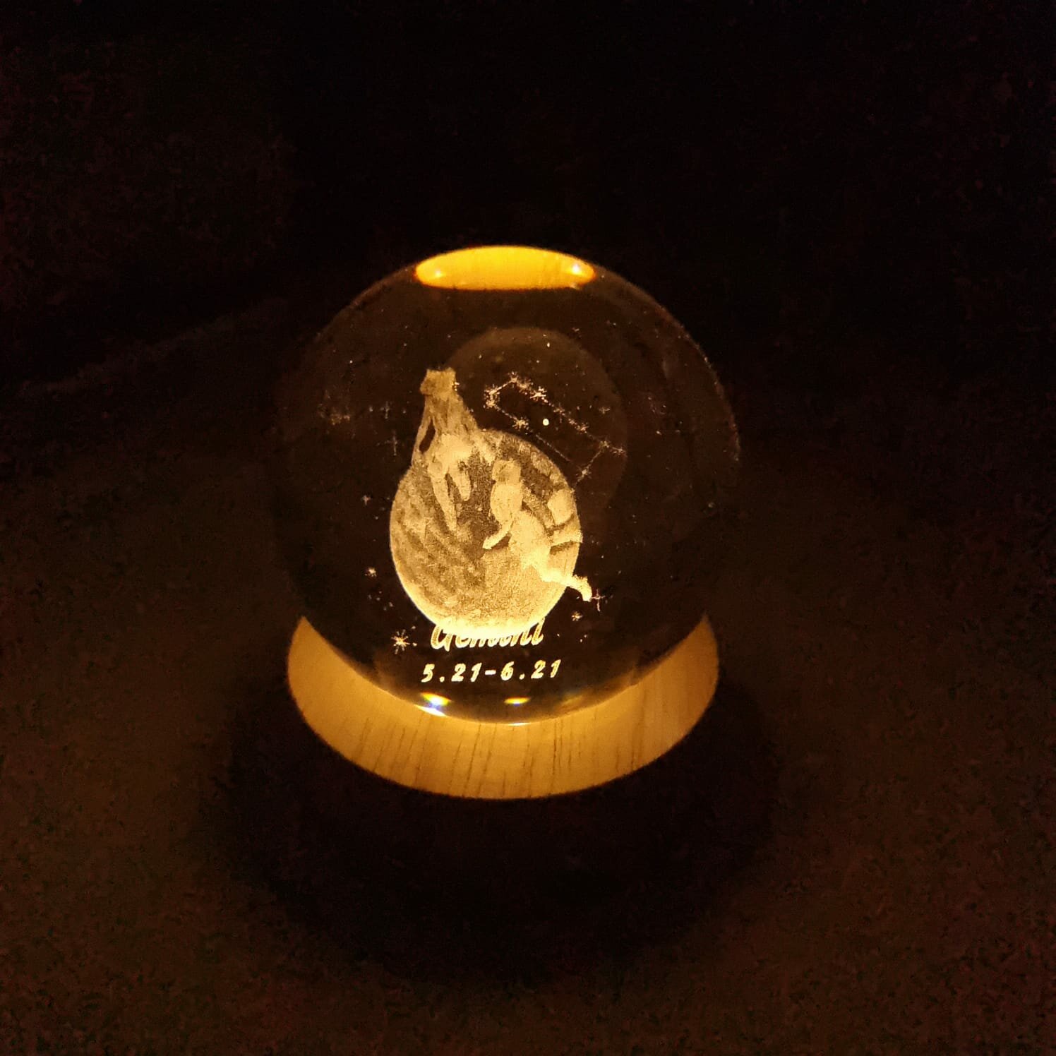 СохранитьХрустальный шар ночник Знак зодиака "Близнецы" с 3D лазерной гравировкой интересное: