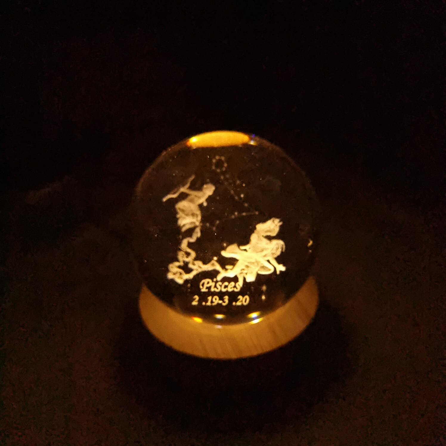 Купить Хрустальный шар ночник Знак зодиака "Рыбы" с 3D лазерной гравировкой