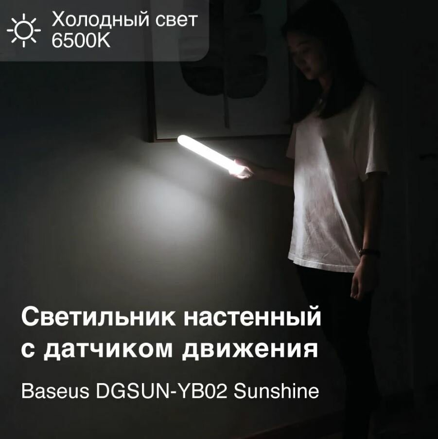 Светильник настенный с датчиком движения Baseus Sunshine DGSUN-YB02, 6500 K, 1 Вт, белый