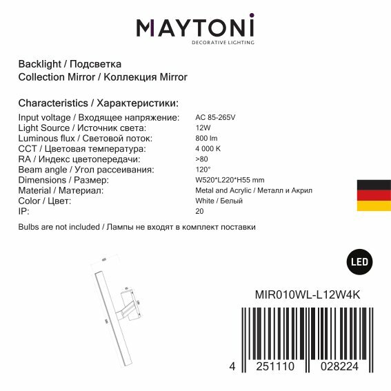 Подсветка для картин Maytoni Decart MIR010WL-L12W4K_MY