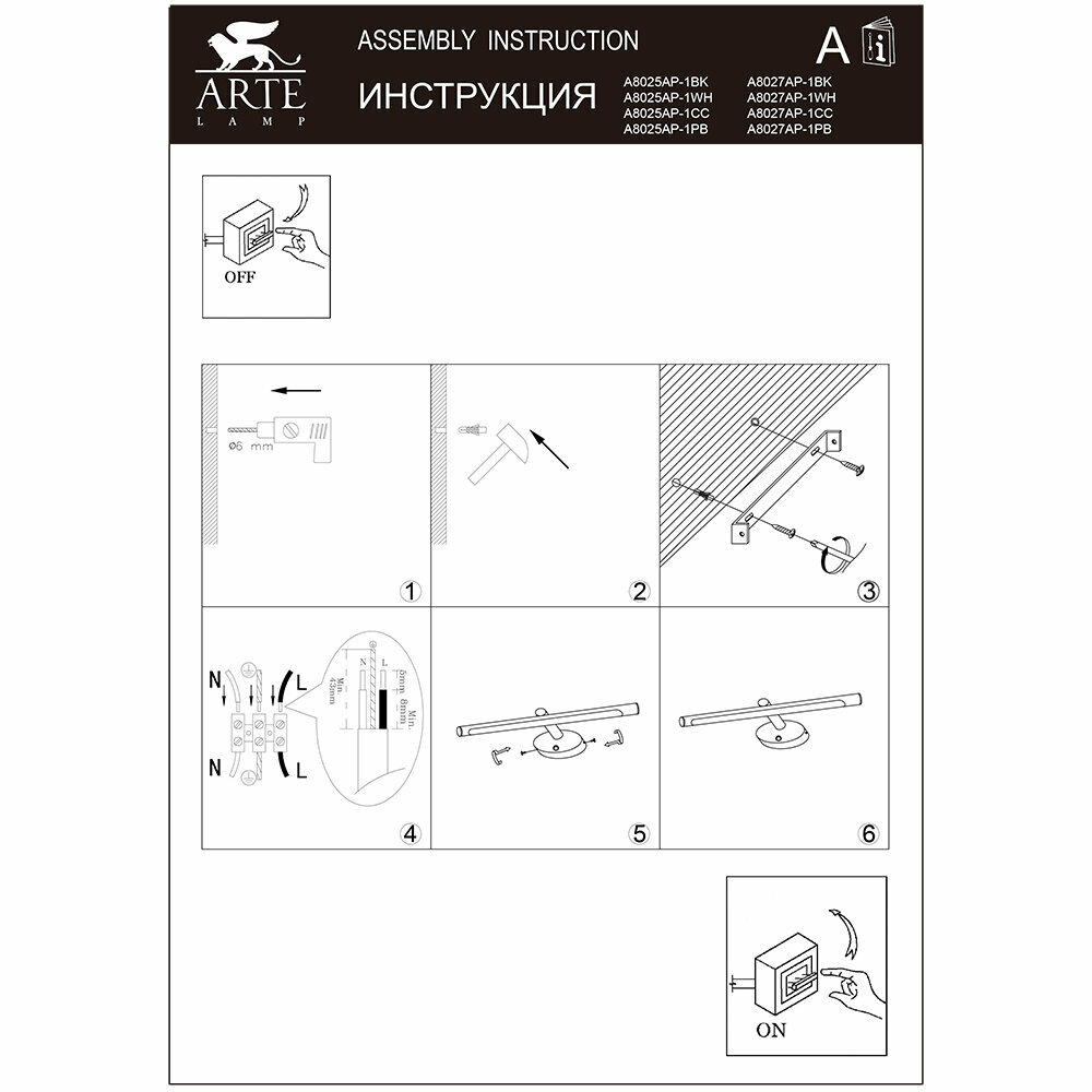 Подсветка для зеркал Arte Lamp ORIZZONE A2935AP-1BK