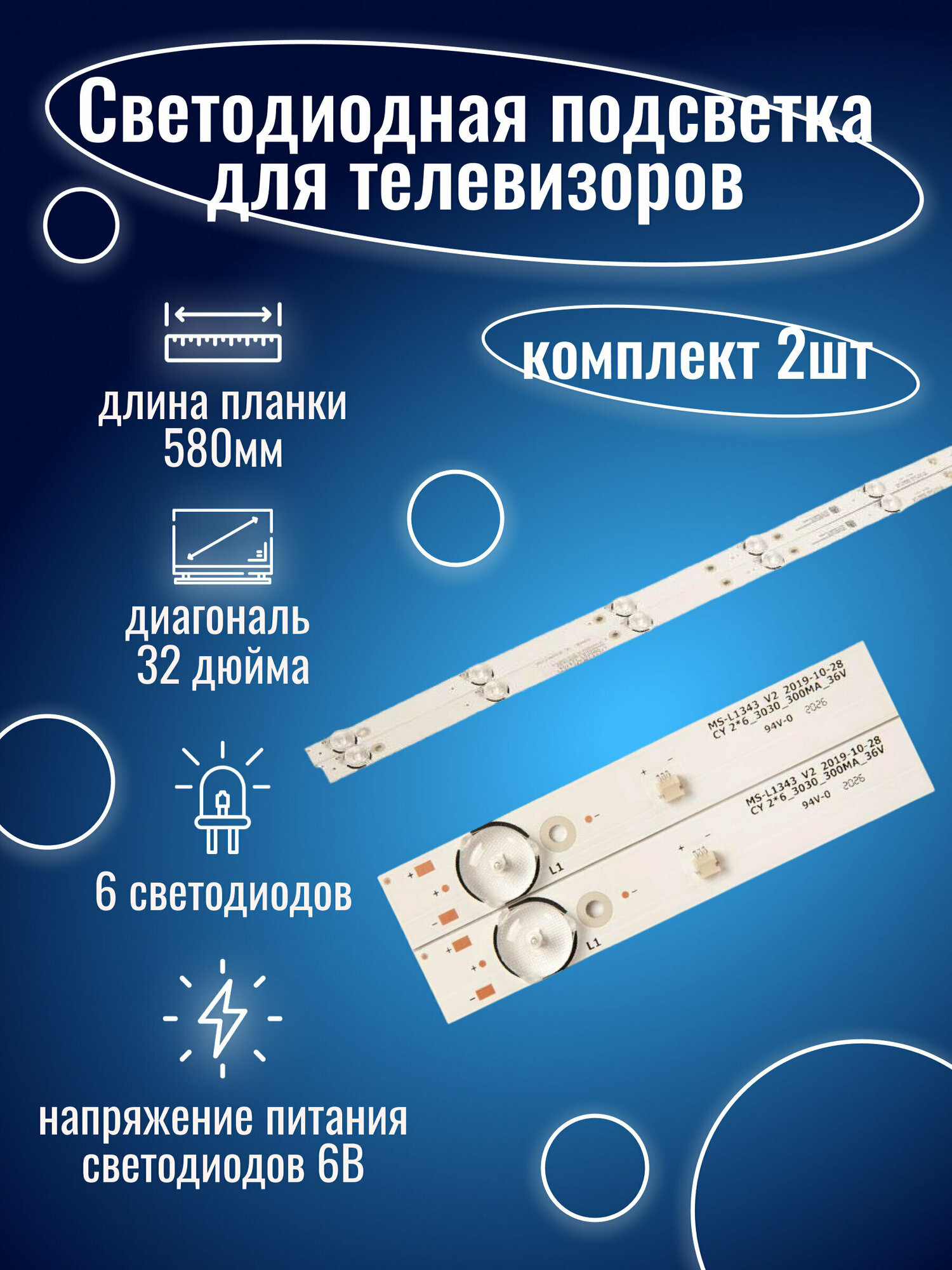 Комплект планок подсветки LED для телевизоров 32" 8D32-DNWR-A3206B, JL.D32061330-081AS-M, MS-L2202 (2 шт) интересное: