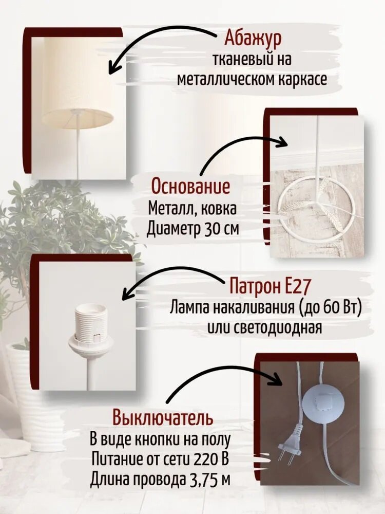 Купить Светильник напольный/ Торшер Фиона / Светильник интерьерный/ белое основание абажур слоновая кость