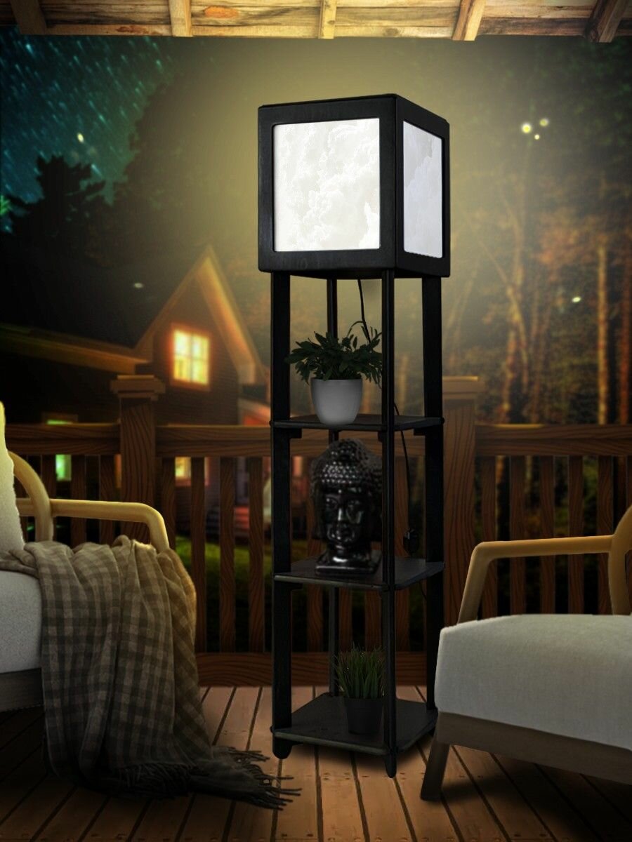 Напольная лампа с полками квадратная, напольный светильник с принтом Абстракция облака (минимализм, небо, природа, дым) - 2038 интересное: