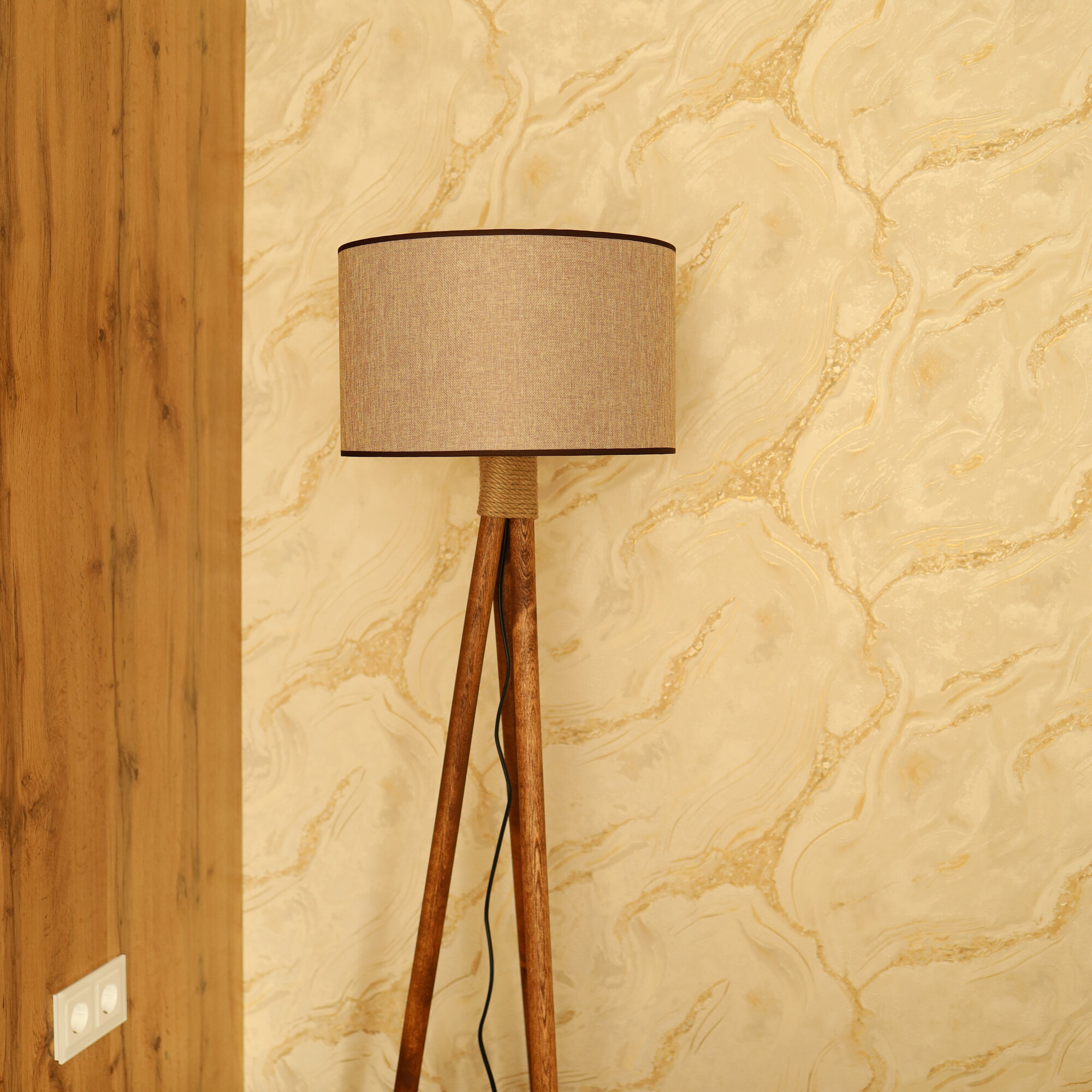 Торшер напольный с абажуром лофт Светильник для комнаты, 160 см, Коричневый лен, Темное дерево интересное: