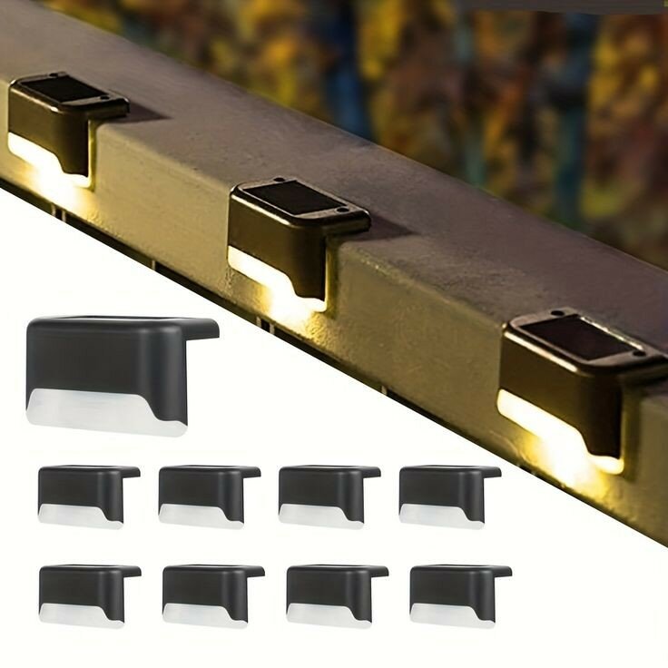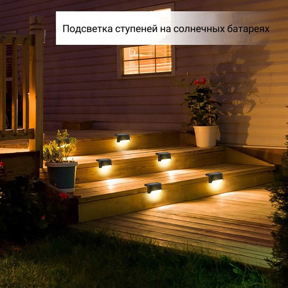 Уличные светильники на солнечных батареях, подсветка для лестницы и ступеней, 8 штук, цвет черный интересное: