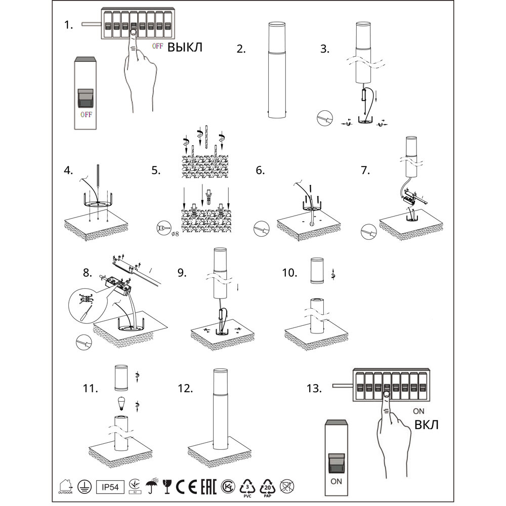 | Установка | грунтовый / наземный / настенный / подвесной / потолочный |