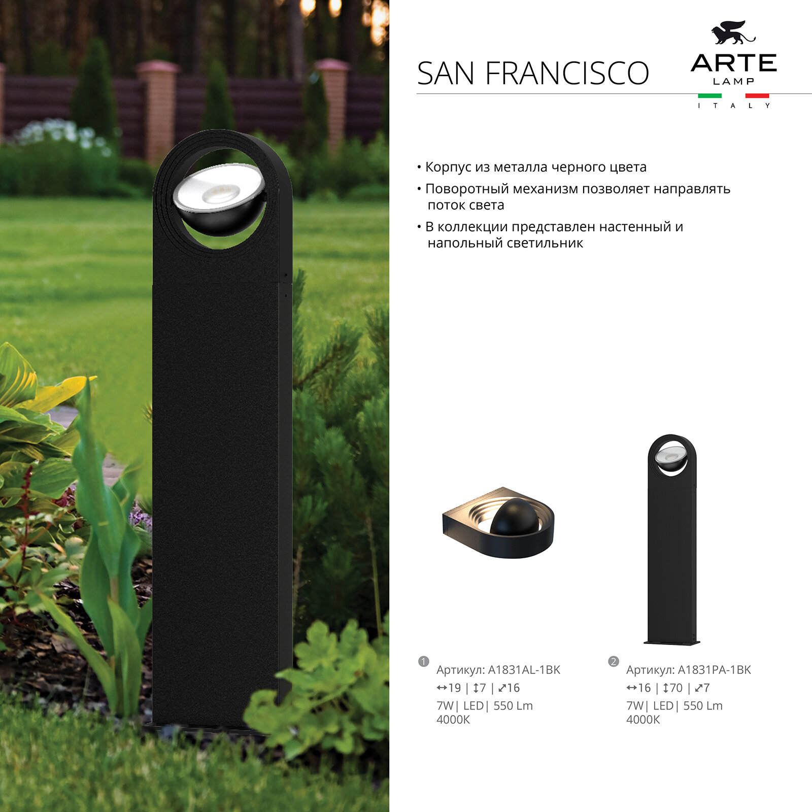 Уличный светодиодный светильник Arte Lamp San Francisco A1831PA-1BK