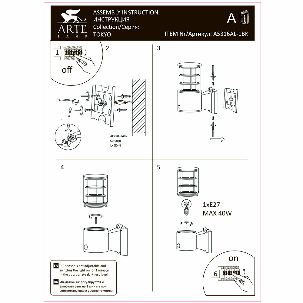 СохранитьУличный светильник ARTE LAMP TOKYO A5316AL-1BK интересное: