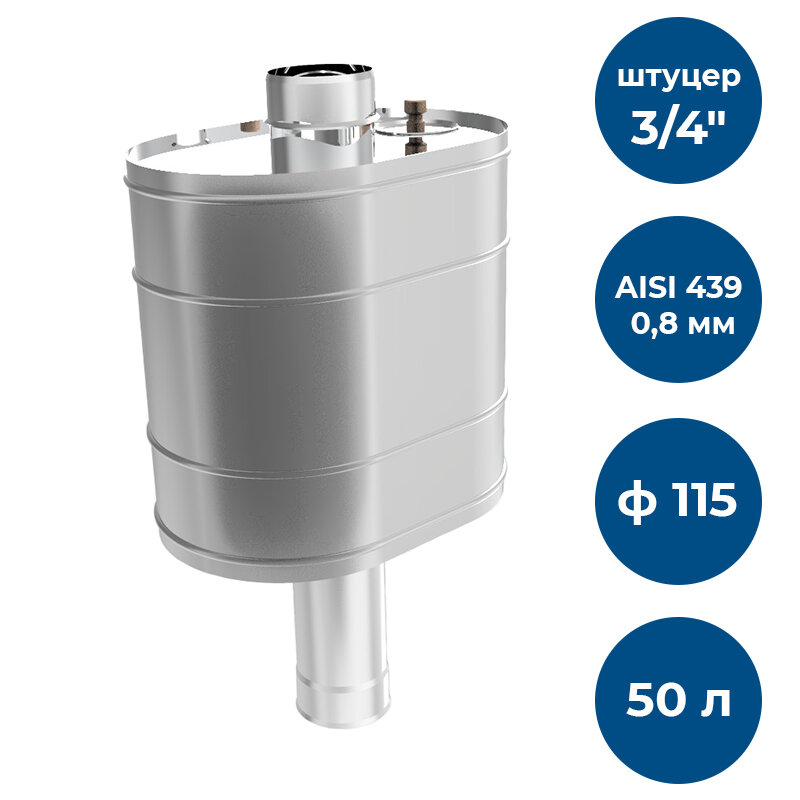 Бак для банной печи на трубе под каменку 50л из стали AISI 439/0,8мм, D 115 интересное: