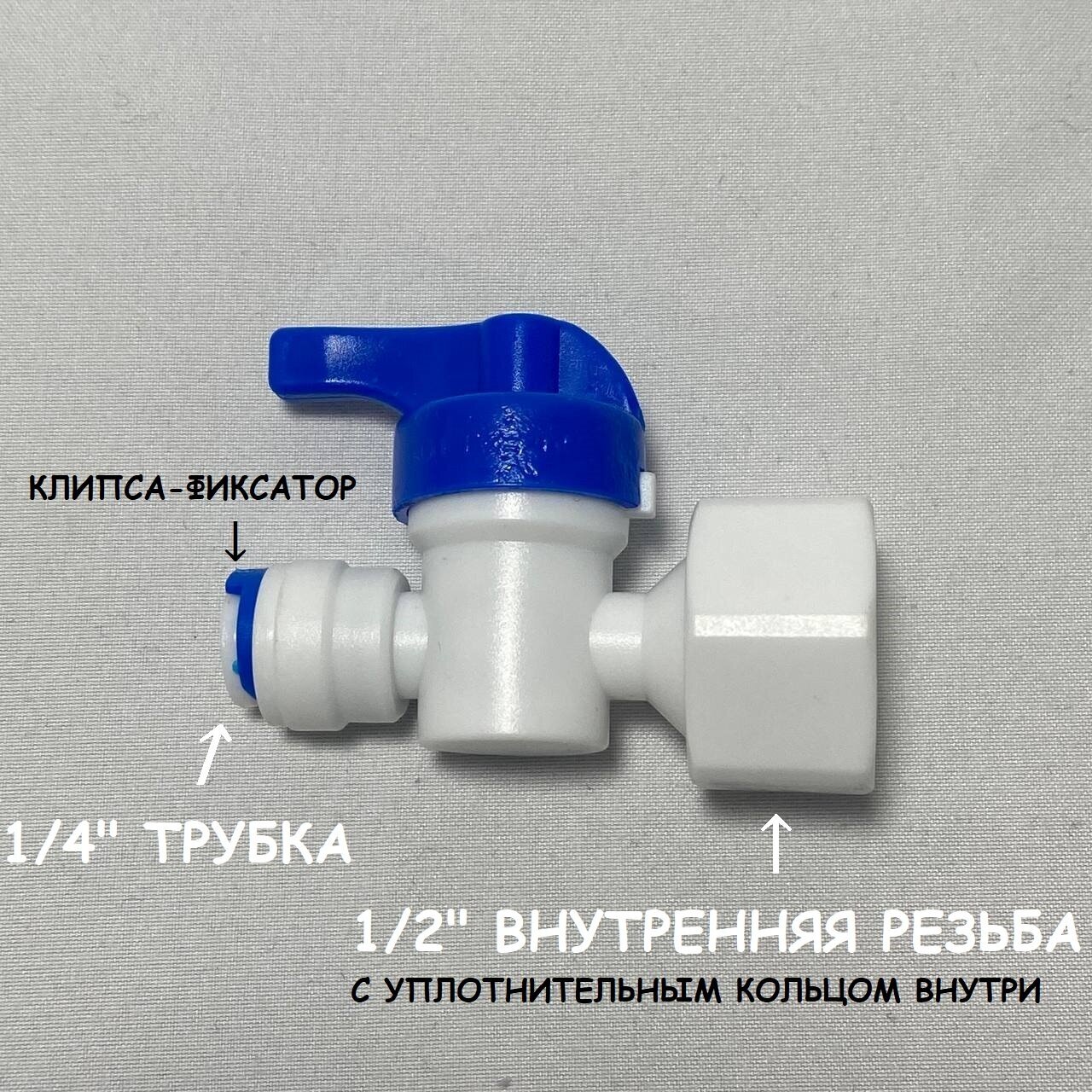 Купить Фитинг кран-переключатель для фильтра UFAFILTER (1/4" трубка - 1/2" внутренняя резьба) из пищевого пластика