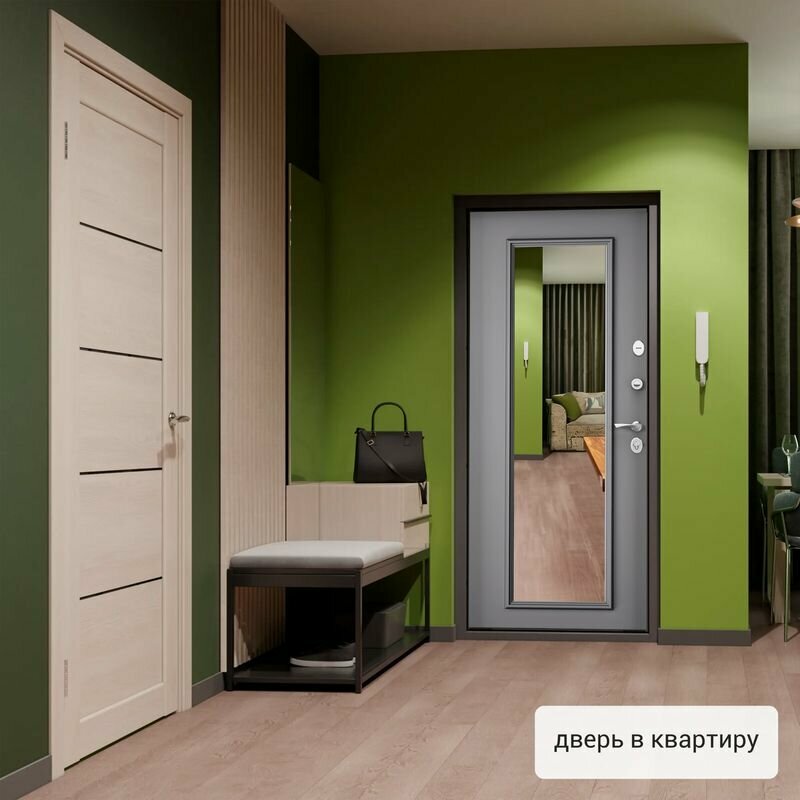 Дверь входная Torex для квартиры металлическая Flat-M 950х2100, открывание впарво, тепло-шумоизоляция, антикоррозийная защита, замки 4-го и 2-го класса, зеркало