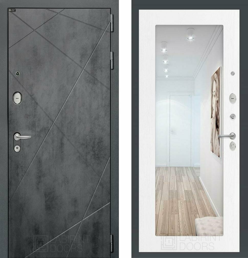 Входная дверь Labirint Лайн WHITE с зеркалом Фацет 960x2050, открывание левое