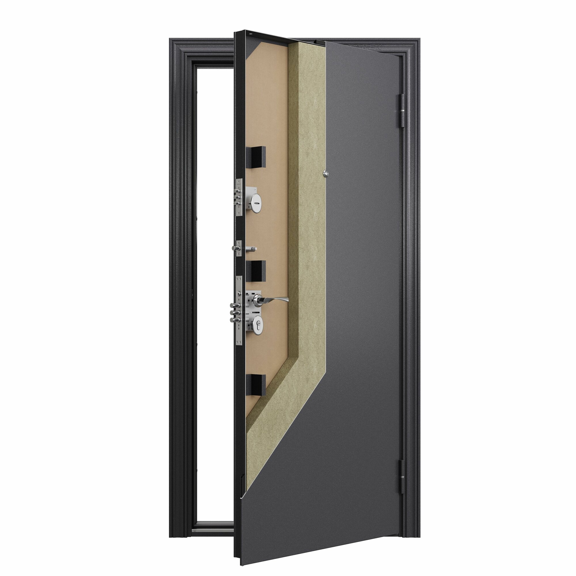 Дверь входная Torex для квартиры металлическая Flat-M 950х2050, открывание вправо, тепло-шумоизоляция, антикоррозийная защита, замки 4-го и 2-го класса защиты, темно-серый/серый