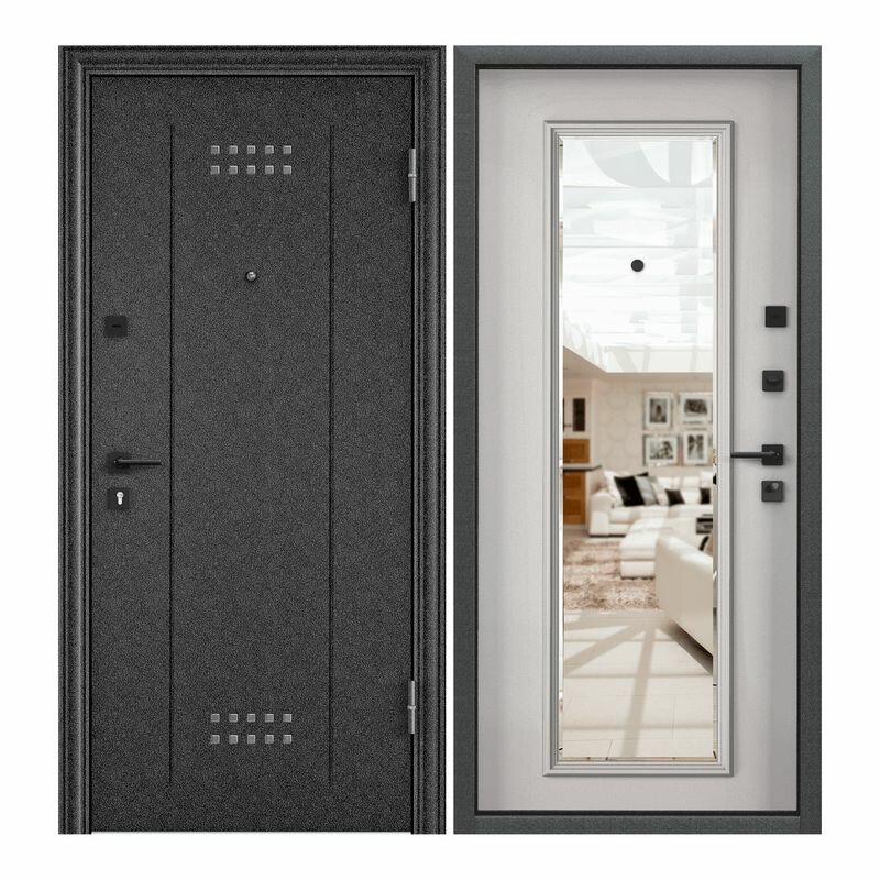 Дверь входная Torex для квартиры металлическая Flat-M 950х2050, открывание впарво, тепло-шумоизоляция, антикоррозийная защита, замки 4-го и 2-го класса, зеркало интересное: