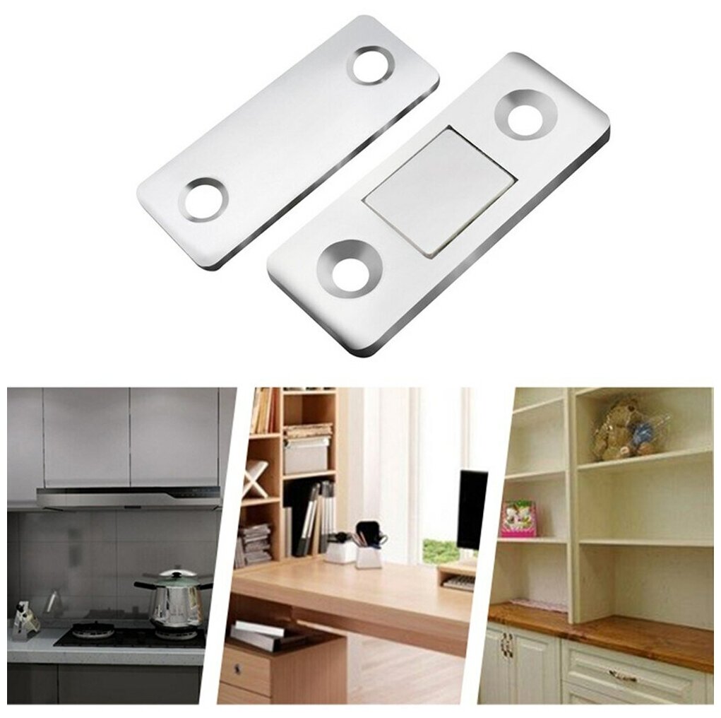 Купить Магнитный замок для дверей, 2 шт, бесшумный накладной замок на межкомнатную дверь, мебельный магнит, серебристый