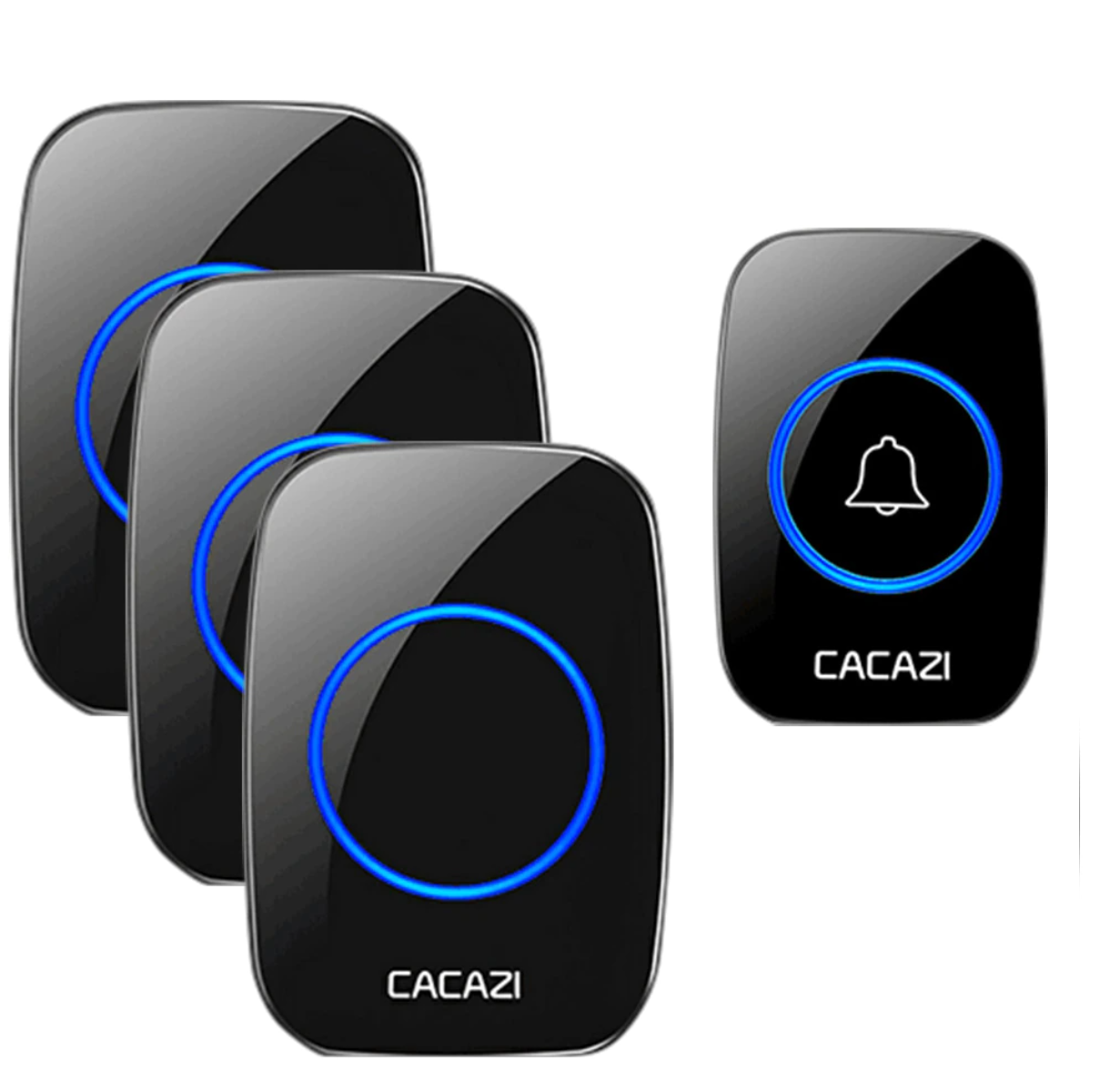 Беспроводной дверной звонок с тремя приемными базами, черный CACAZI A13B интересное:
