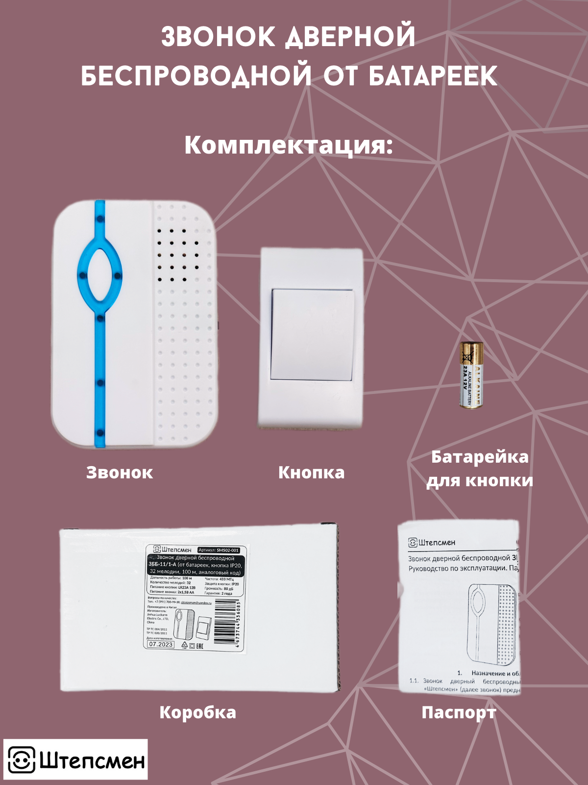 | Вид звонка | электронный беспроводной |