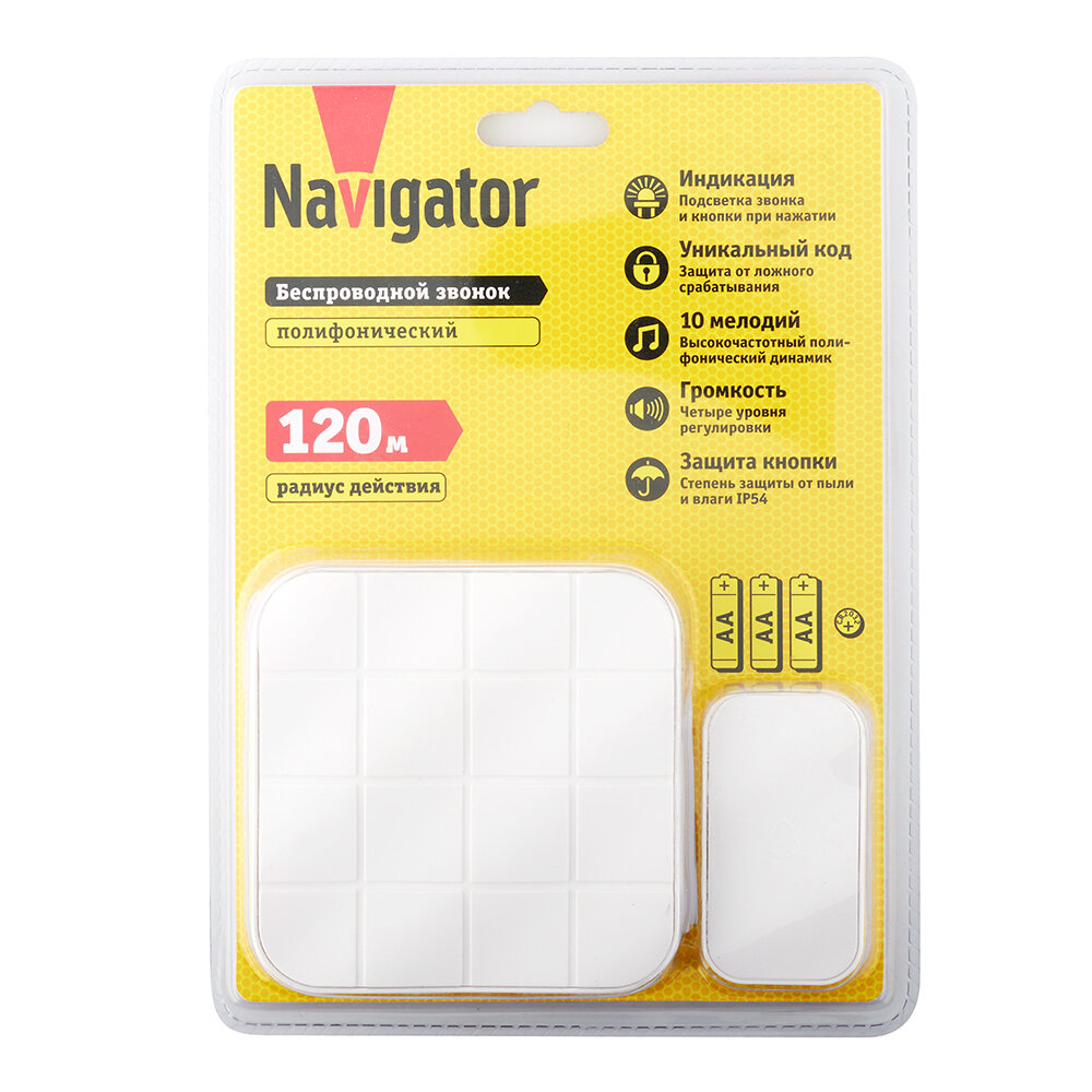 Звонок дверной беспроводной цифровой Navigator 61 275, 1 звонок/ 1 кнопка, белый
