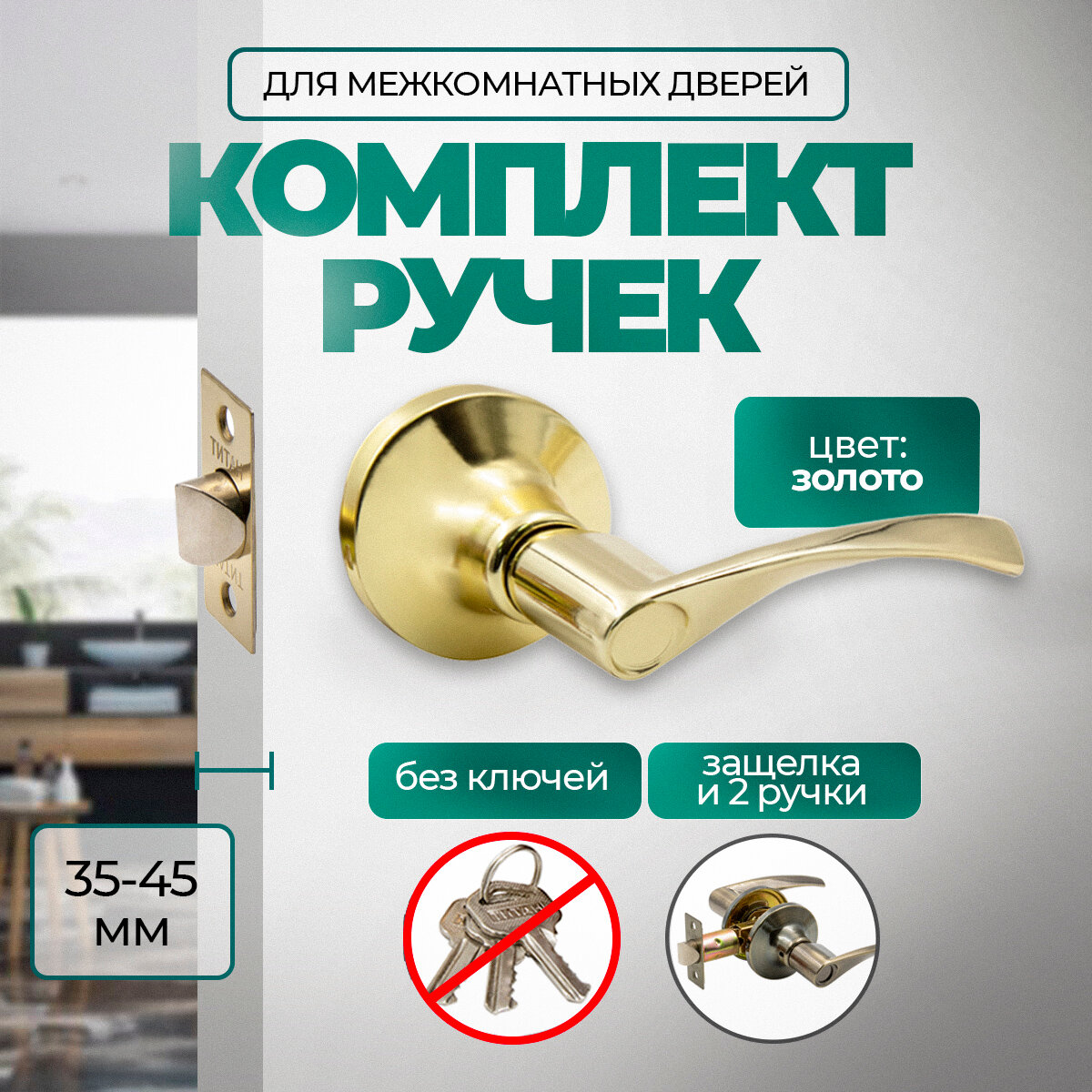 Ручка дверная межкомнатная с защелкой Титан 200-05 РВ , без запирания, Золото интересное: