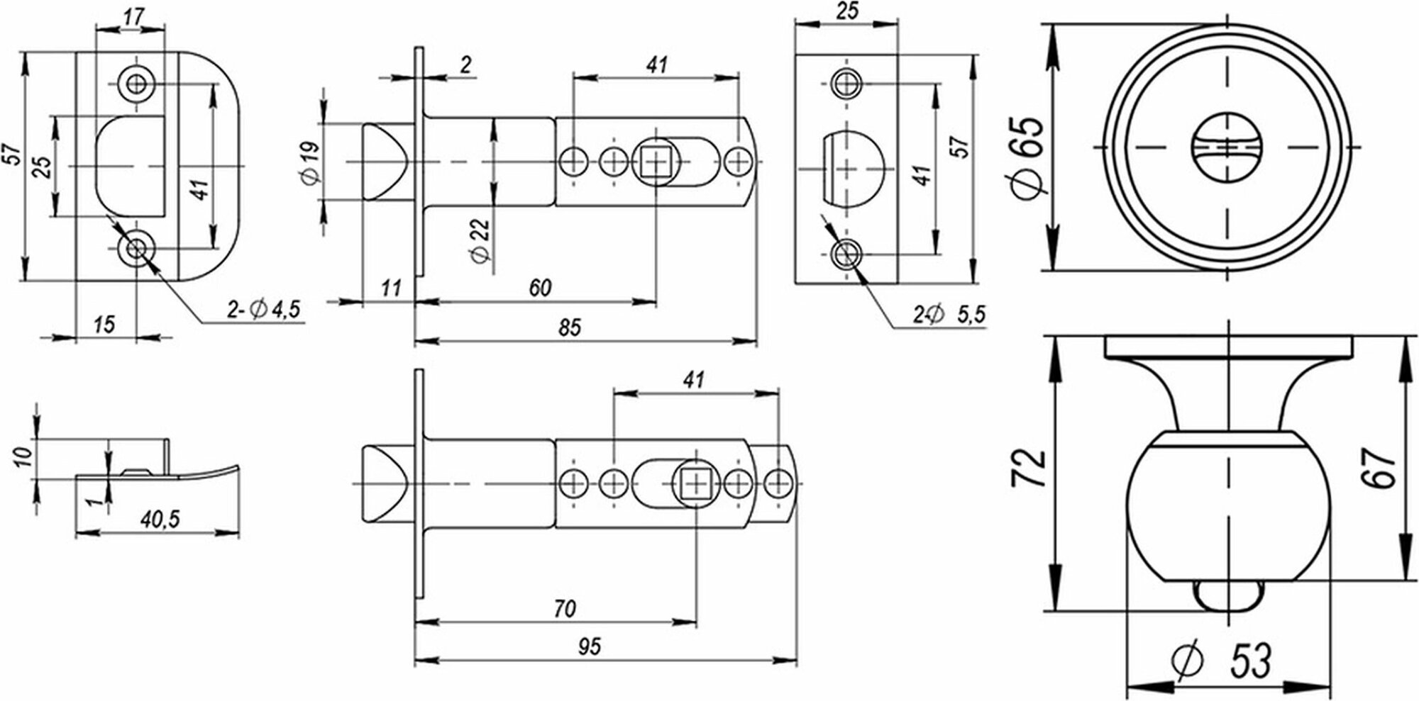 | Комплектация | 2 дверные ручки, 1 защелка, 1 ответная планка с вкладышем, 4 самореза, 1 монтажный ключ, инструкция по установке |