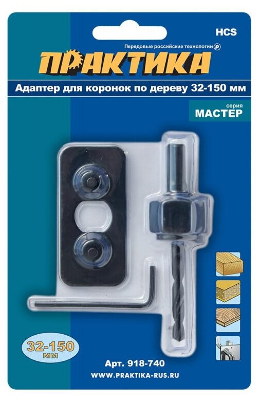 Адаптер ПРАКТИКА держатель для HCS коронок 32-150мм с ведущей пластиной (1шт), блистер (918-740) интересное:
