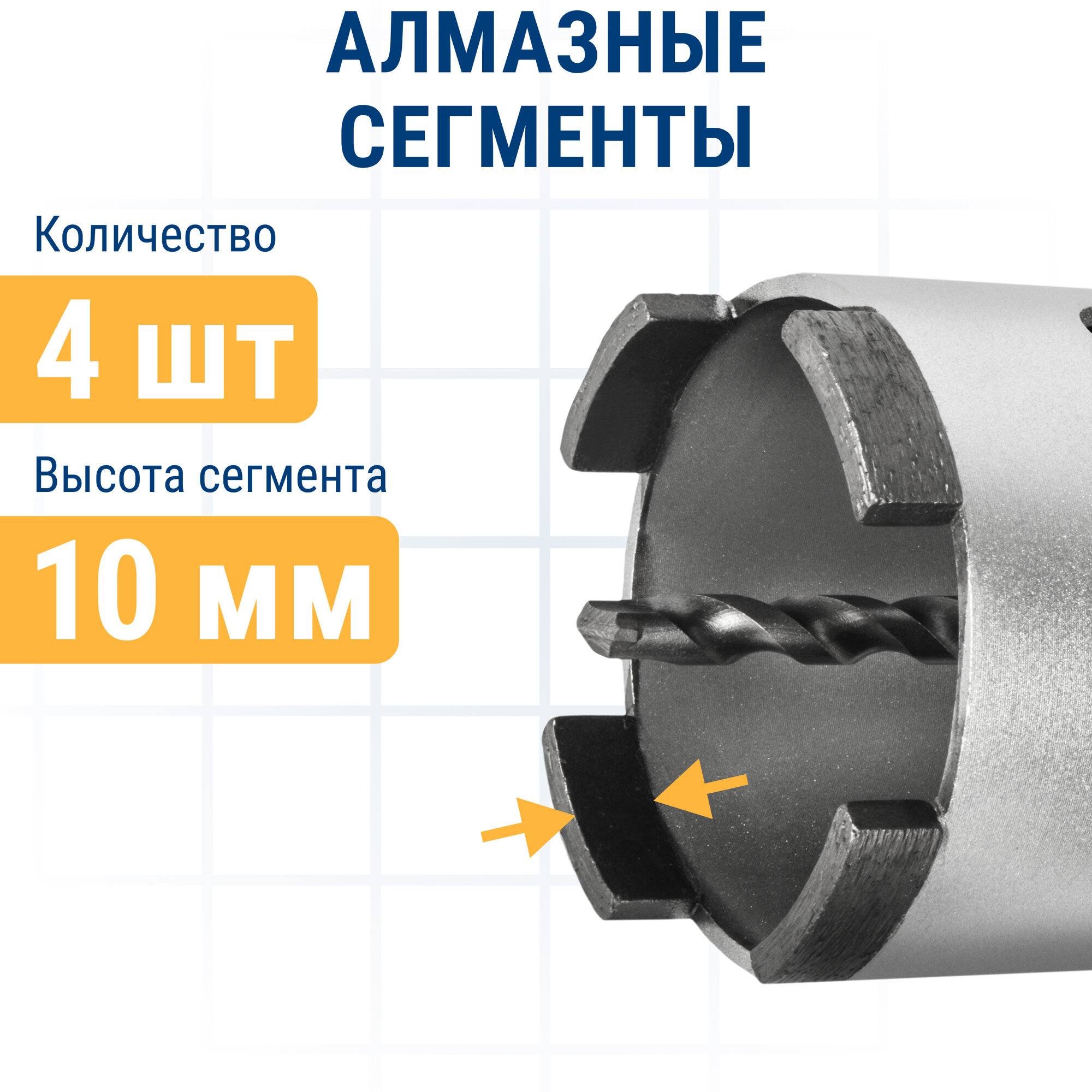 Коронка алмазная по бетону ПРАКТИКА "Профи" по бетону SDS-plus безударная 68 мм 4 сегмента высотой 10мм