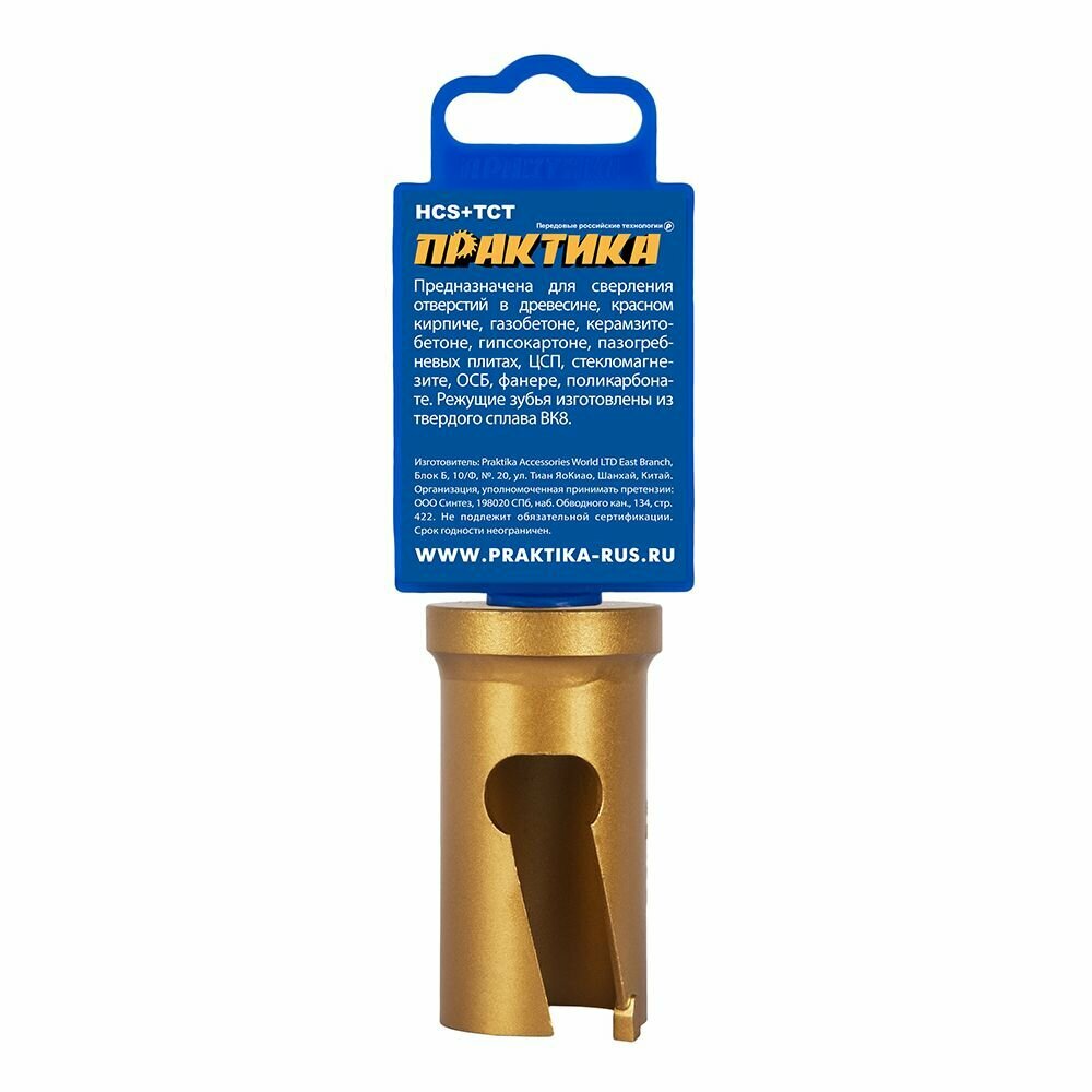 | Дополнительная информация | Держатель коронки универсальной ПРАКТИКА 32-152мм со сверлом |