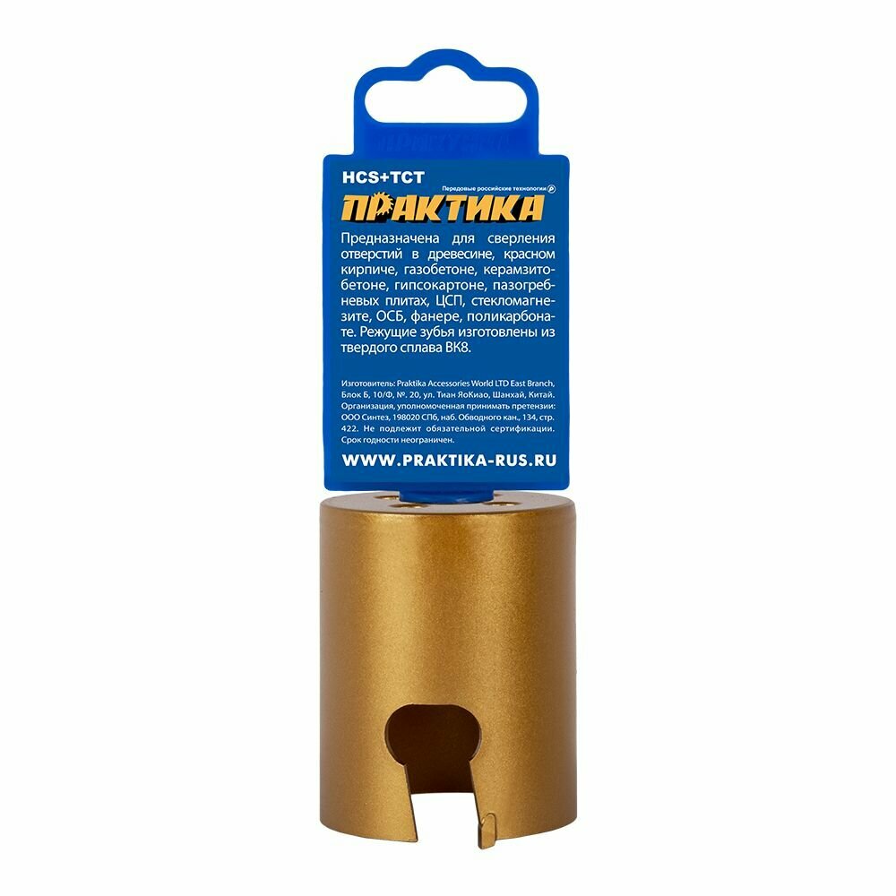| Дополнительная информация | Держатель коронки универсальной ПРАКТИКА 32-152мм со сверлом |