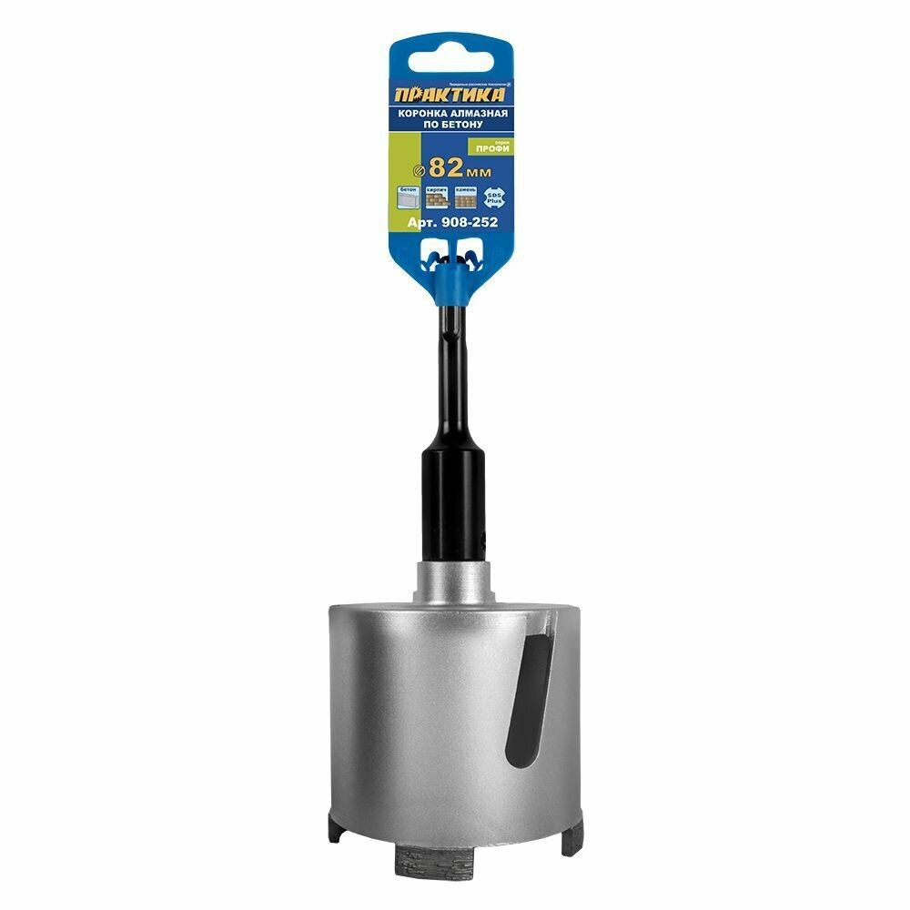 Купить Коронка алмазная по бетону ПРАКТИКА "Профи" по бетону SDS-plus безударная 82 мм 4 сегмента высотой 10мм
