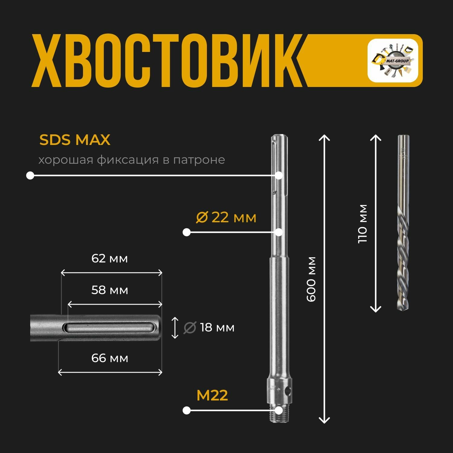 Удлинитель хвостовик для коронки SDS-MAX 600 мм для перфоратора интересное: