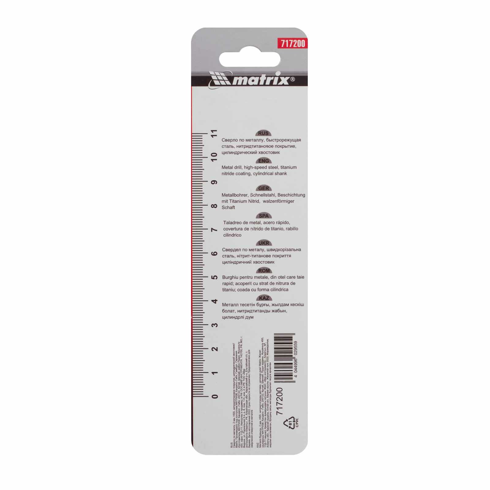 Сверло По Металлу, 2 Мм, Hss, Нитридтитановое Покрытие, Цилиндрический Хвостовик// Matrix Matrix арт. 717200