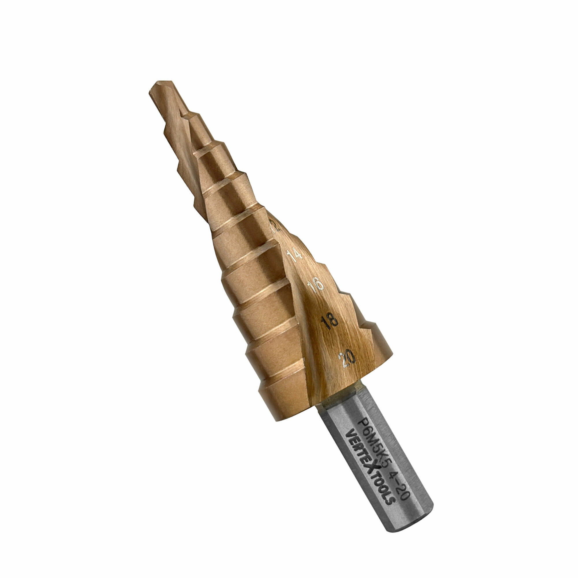 Сверло ступенчатое 4-20 мм; шаг 2 мм Vertextools из стали Р6М5