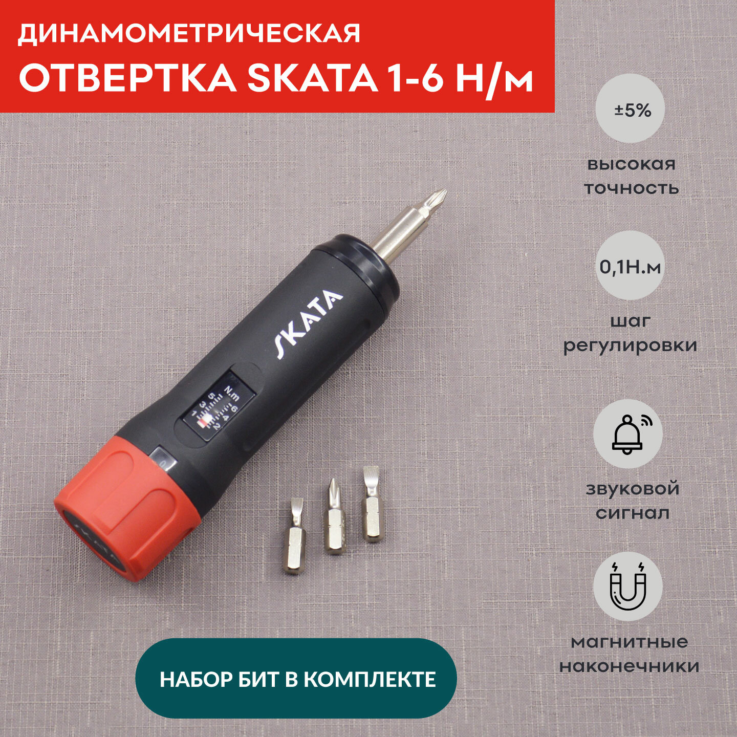 Отвертка динамометрическая регулируемая 1-6 Н/м, SKATA интересное: