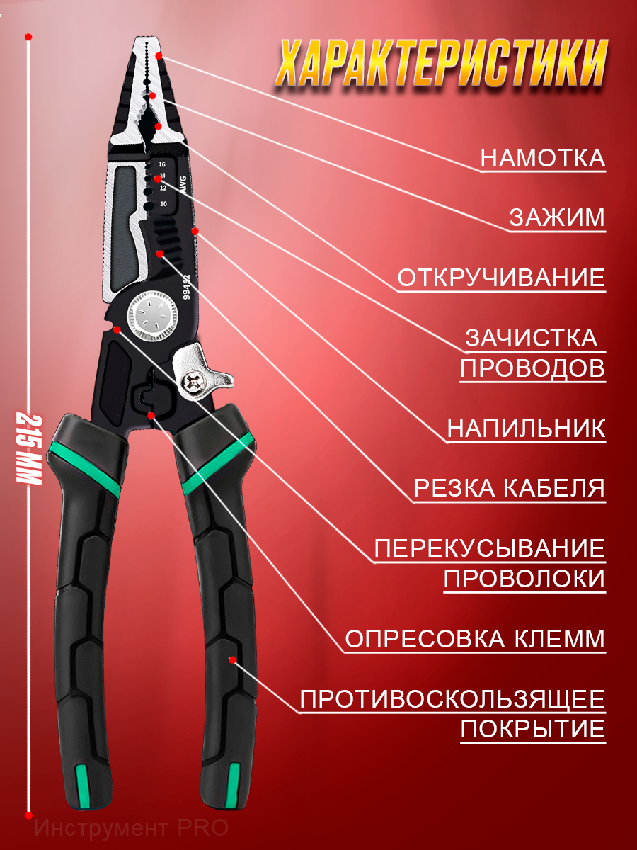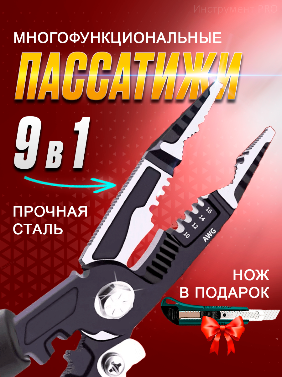 Пассатижи многофункциональные с фиксатором плоскогубцы электрика 9 в 1 интересное: