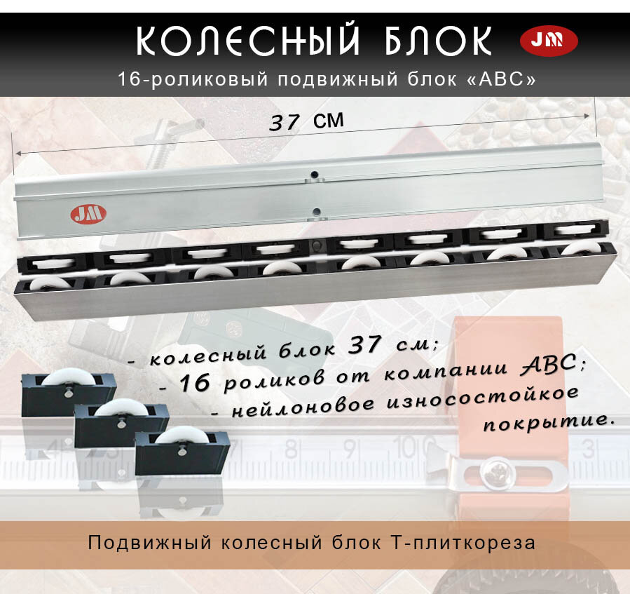 | Комплект поставки | Т-профиль - штанга с 2-мя болтами; колесный блок 37см на 16 роликов; режущий блок с лезвием; |