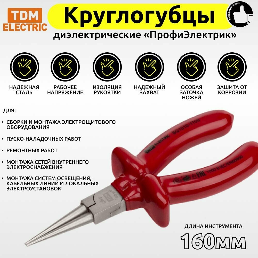Круглогубцы диэлектрические TDM ПрофиЭлектрик 160мм 1000В CR-V SQ1010-1105 интересное: