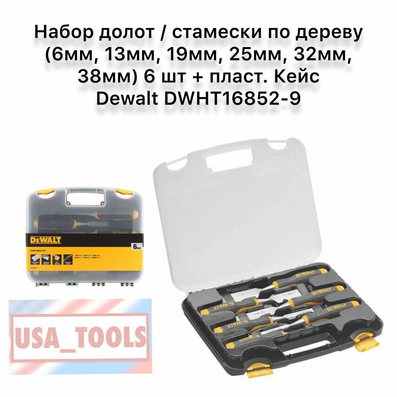 Набор долот / стамески по дереву (6мм, 13мм, 19мм, 25мм, 32мм, 38мм) 6 шт + пласт. Кейс Dewalt DWHT16852-9 интересное: