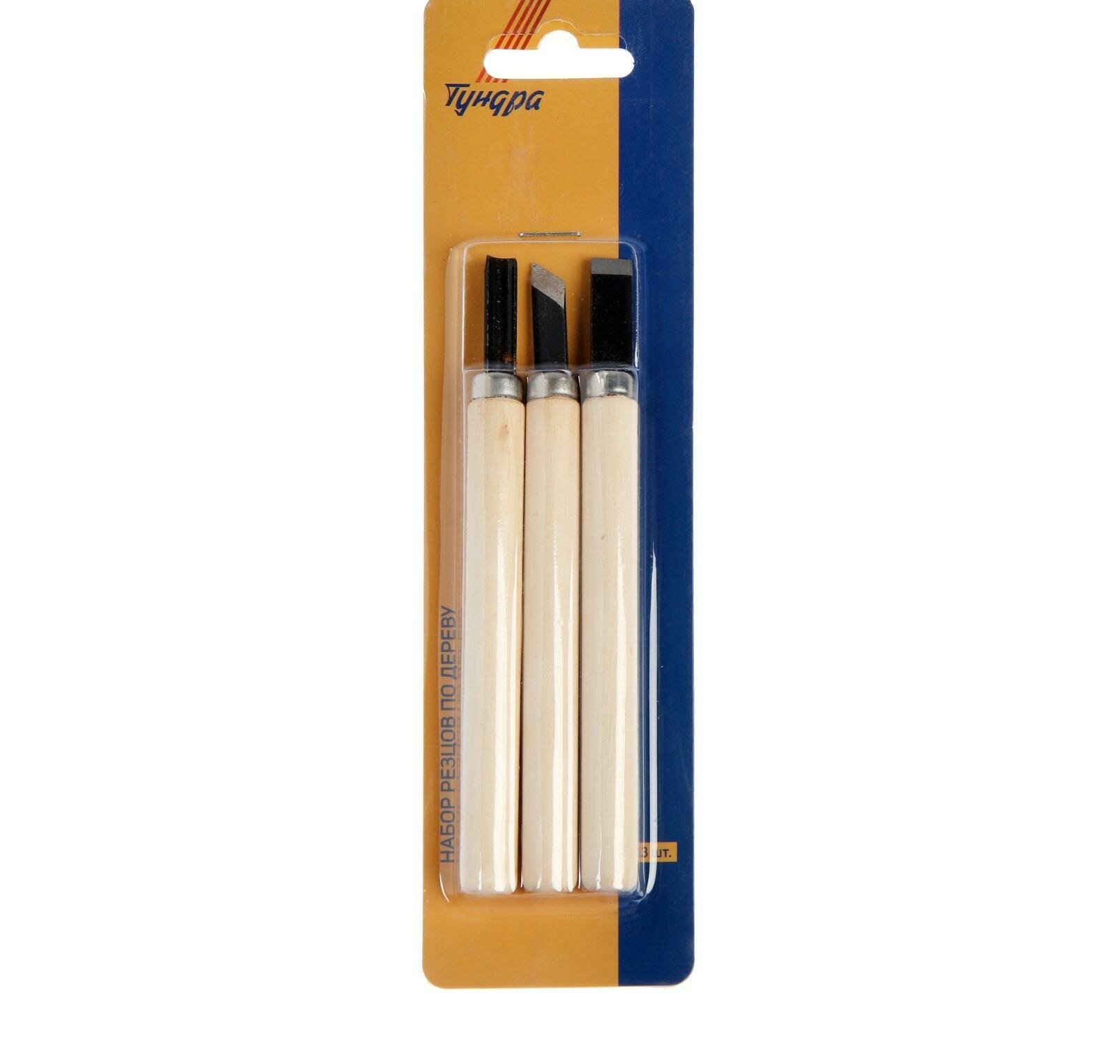 Набор резцов по дереву тундра, деревянная рукоятка, 3 шт. 2303625 интересное: