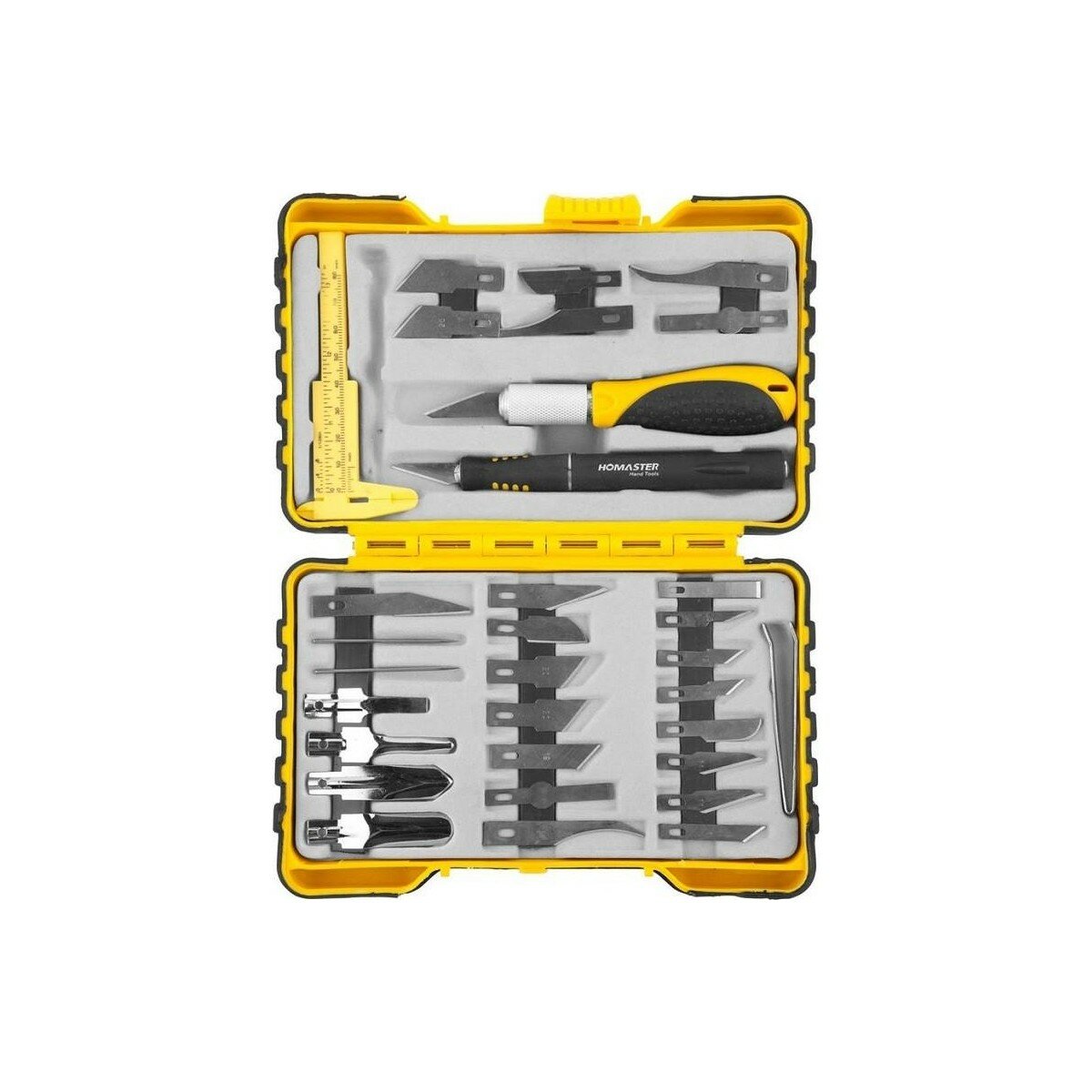 | Состав набора | рукоятка двухком-понентная с резцом – 2 шт., резец фигурный – 22 шт., долото – 4 шт., пинцет, игла-шило – 2 шт., отвертка SL2, штангенциркуль пластиковый |