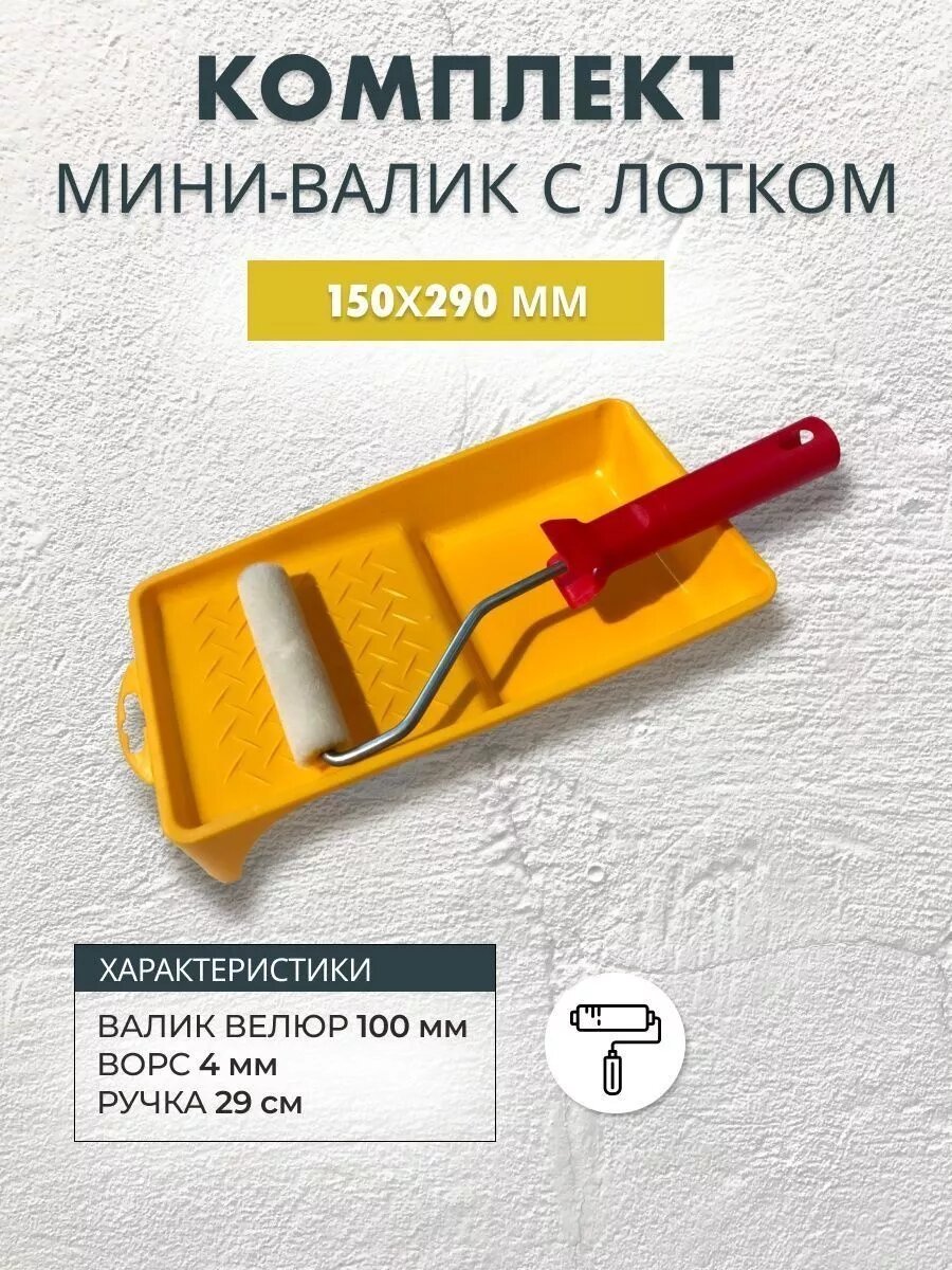 Мини-валик велюровый 100 мм с лотком 150x290 мм, для стен и потолков интересное:
