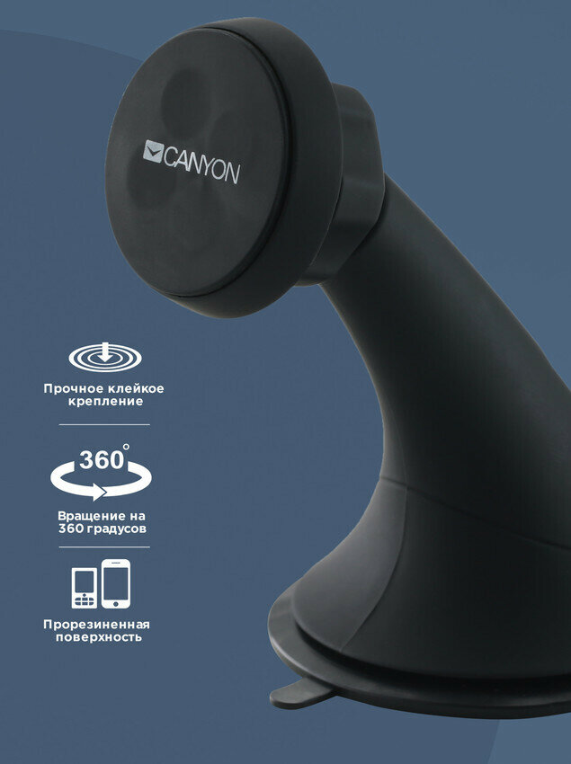Магнитный автодержатель для смартфона на торпеду или лобовое стекло Canyon CH-6, черный