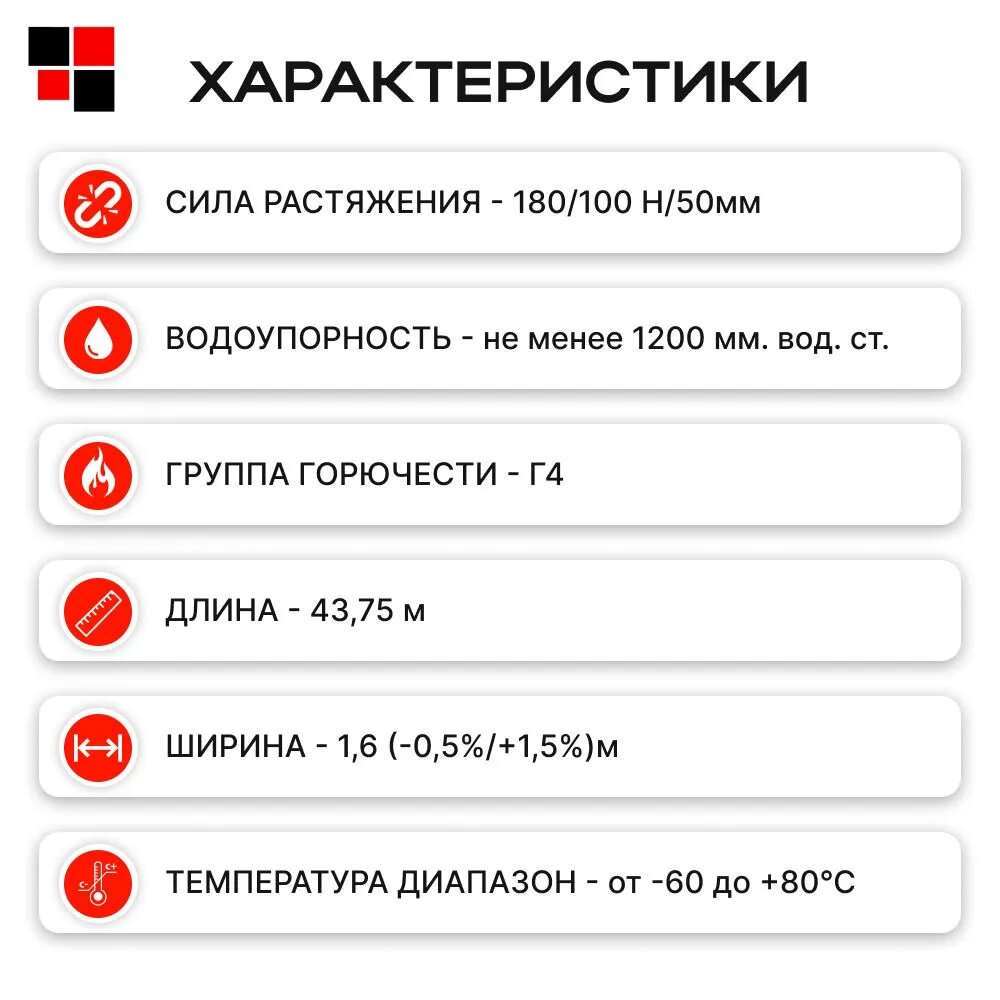 | Прочность на разрыв продольная | 180 Н/5 см |
