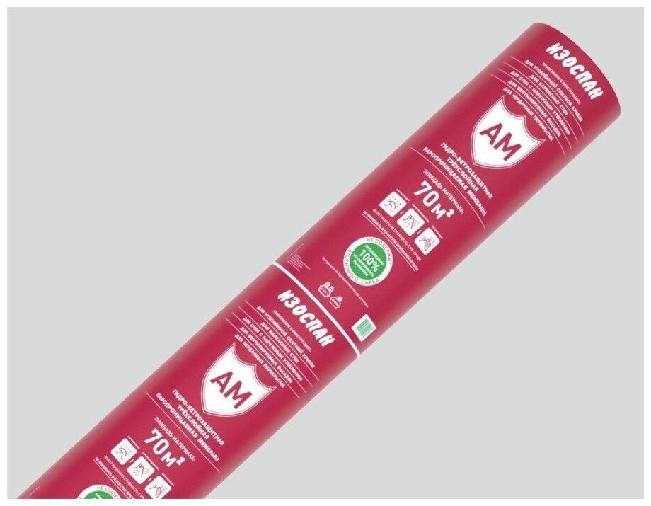 Изоспан АМ 35 м2 гидро-ветрозащитная паропраницаемая мембрана, трехслойная диффузионная гидроизоляция для кровли, стен и фасадов (свернутый в 0,8м.)